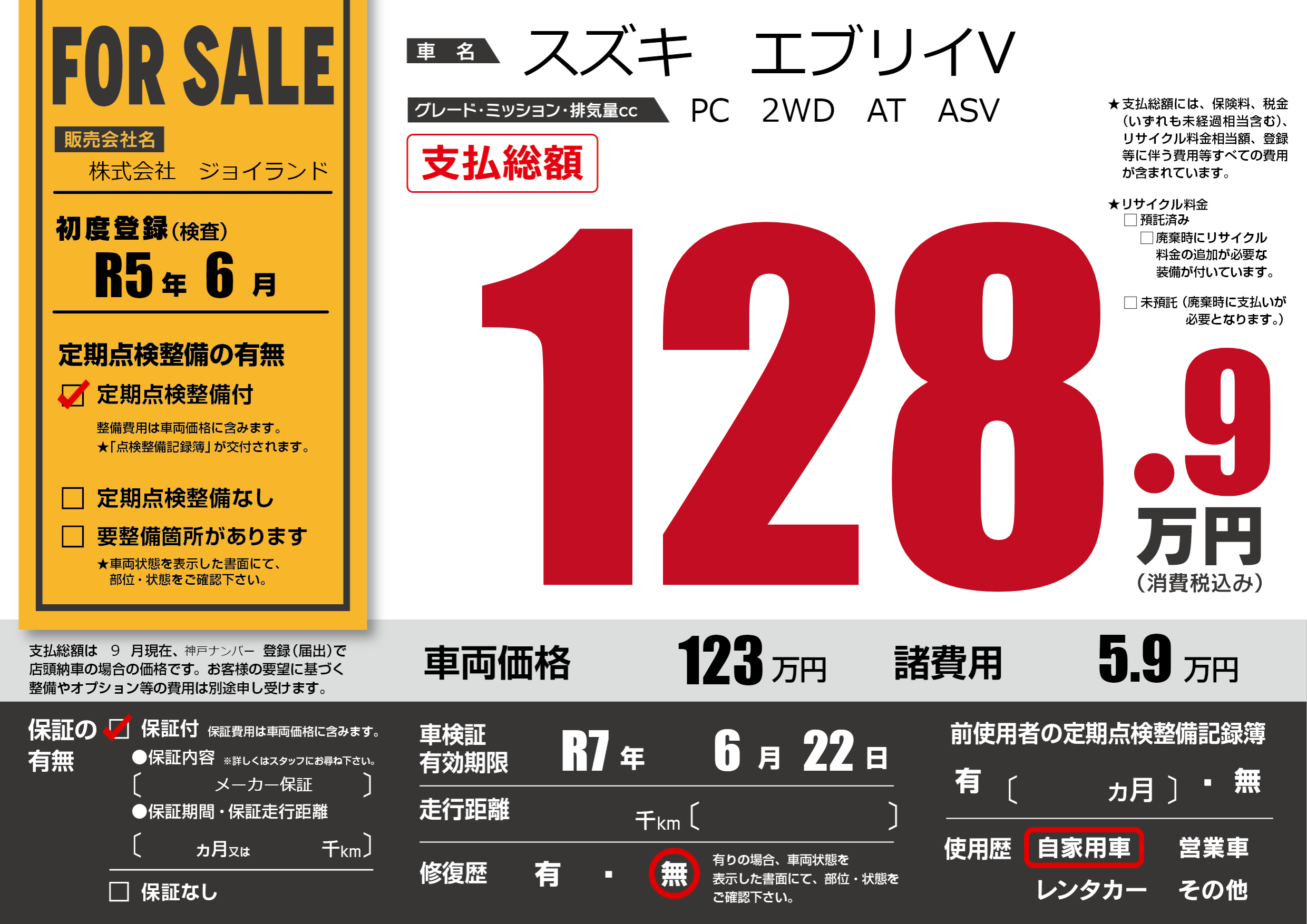 | 走行キロ | - | 初年度登録 | R5年6月 |
