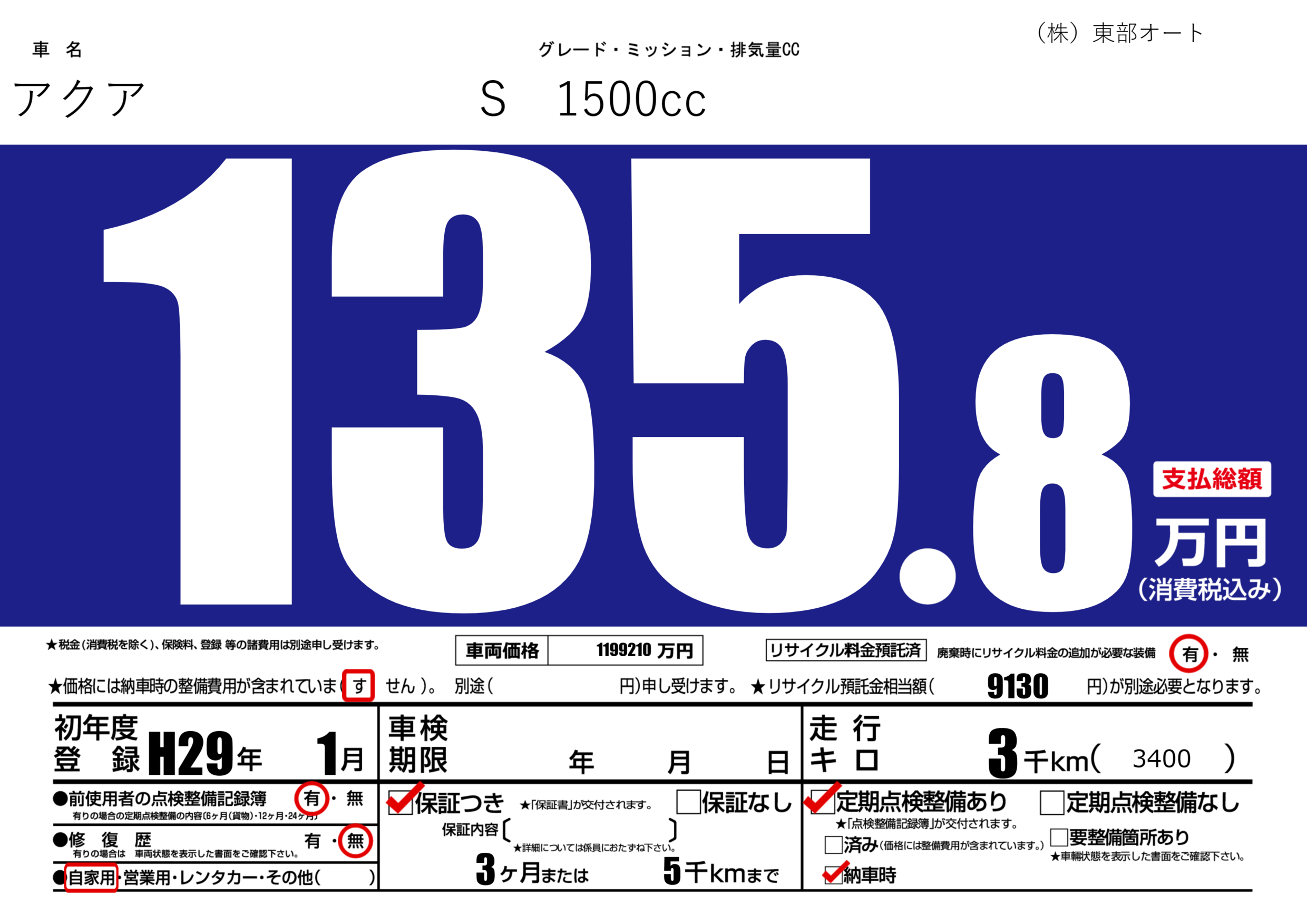 保証付き 保証内容(---) 3ヶ月または(5)千kmまで |