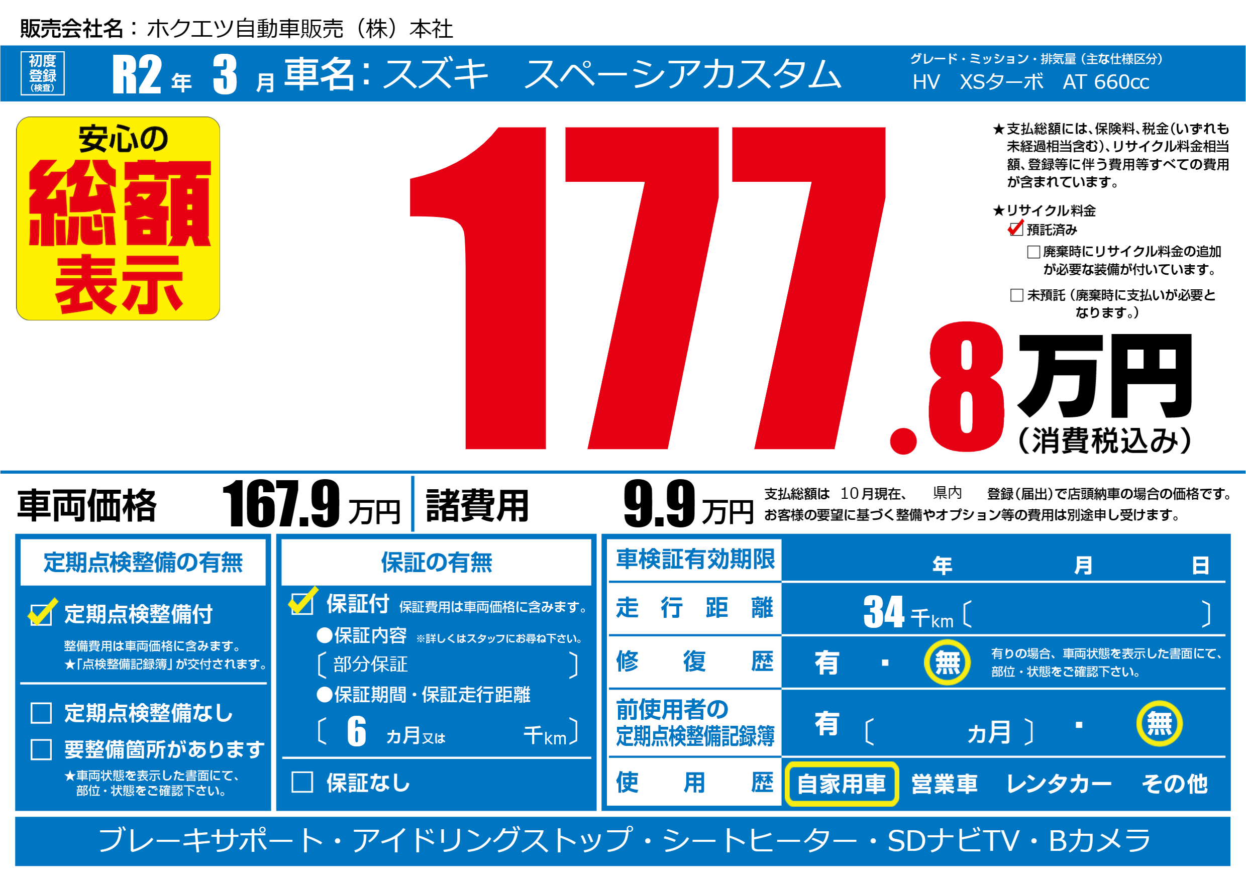 | 定期点検整備 | 定期点検整備あり | ||