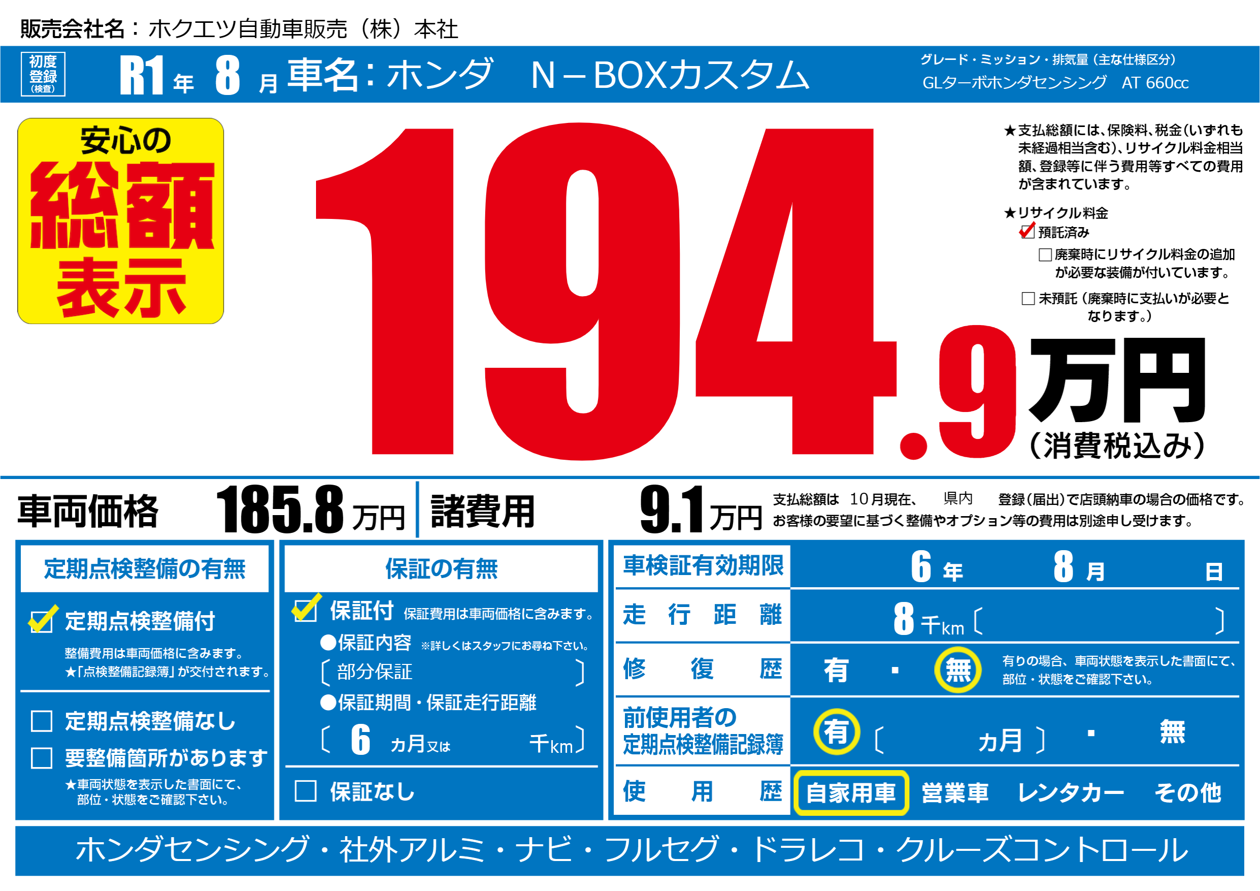 なし | 車検制限 | 6年8月---月 |