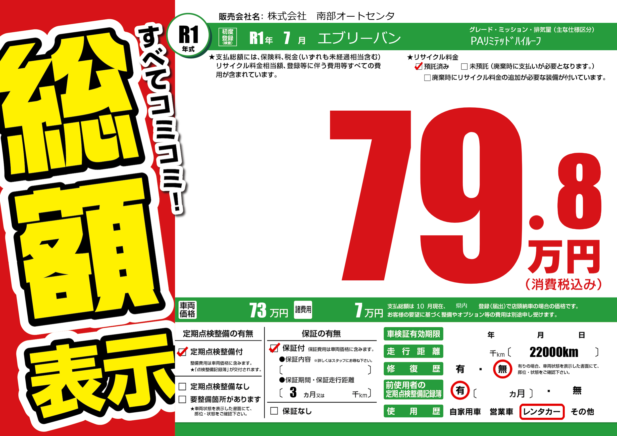 | 車名 | エブリーバン | グレード ミッション 排気量 |