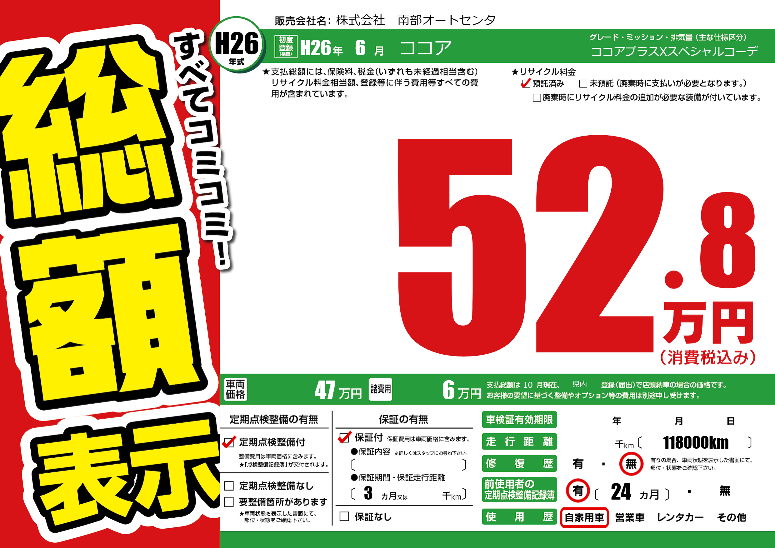 | 走行キロ | - | 初年度登録 | H26年6月 |