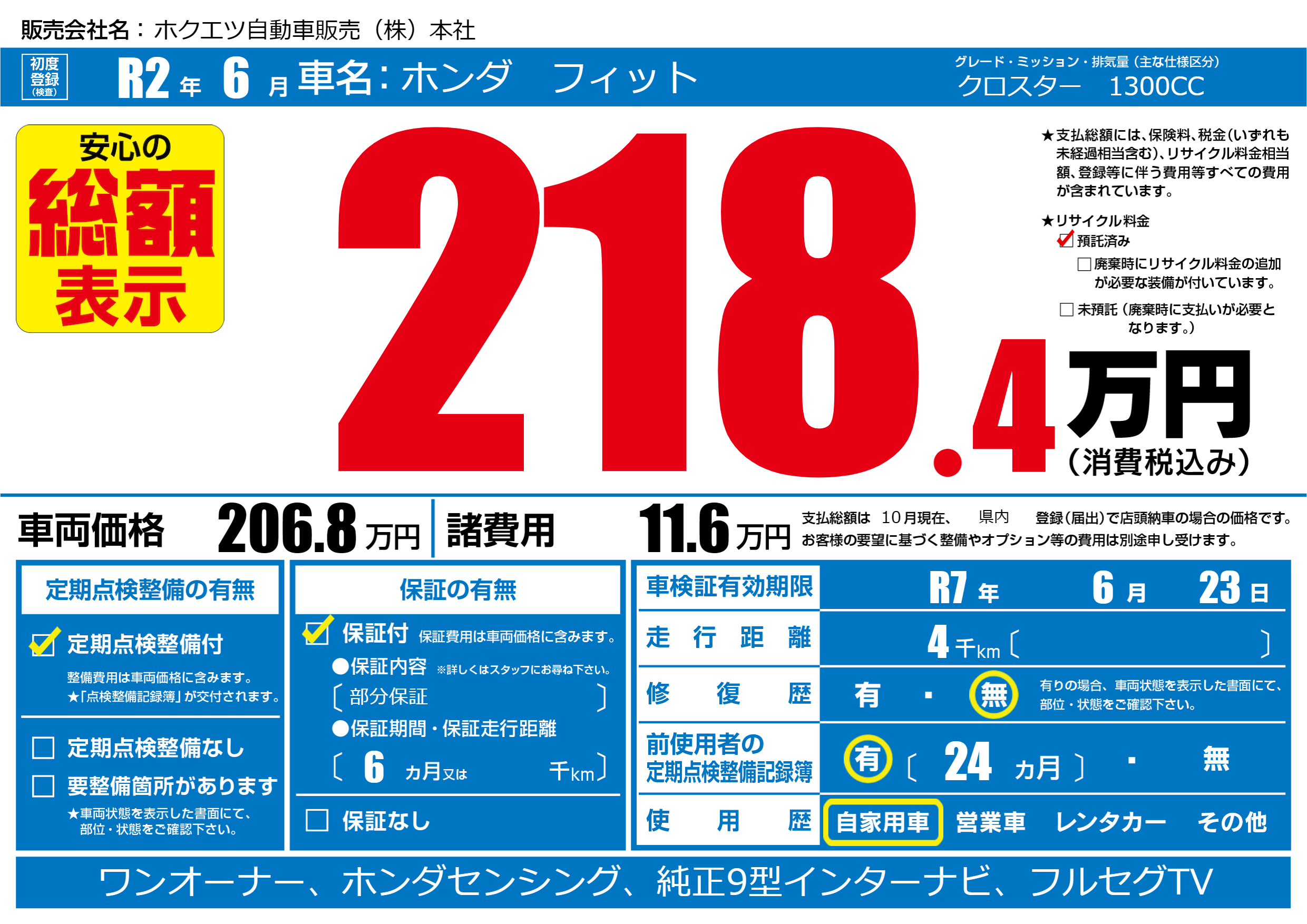 なし | 車検制限 | R7年6月23月 |