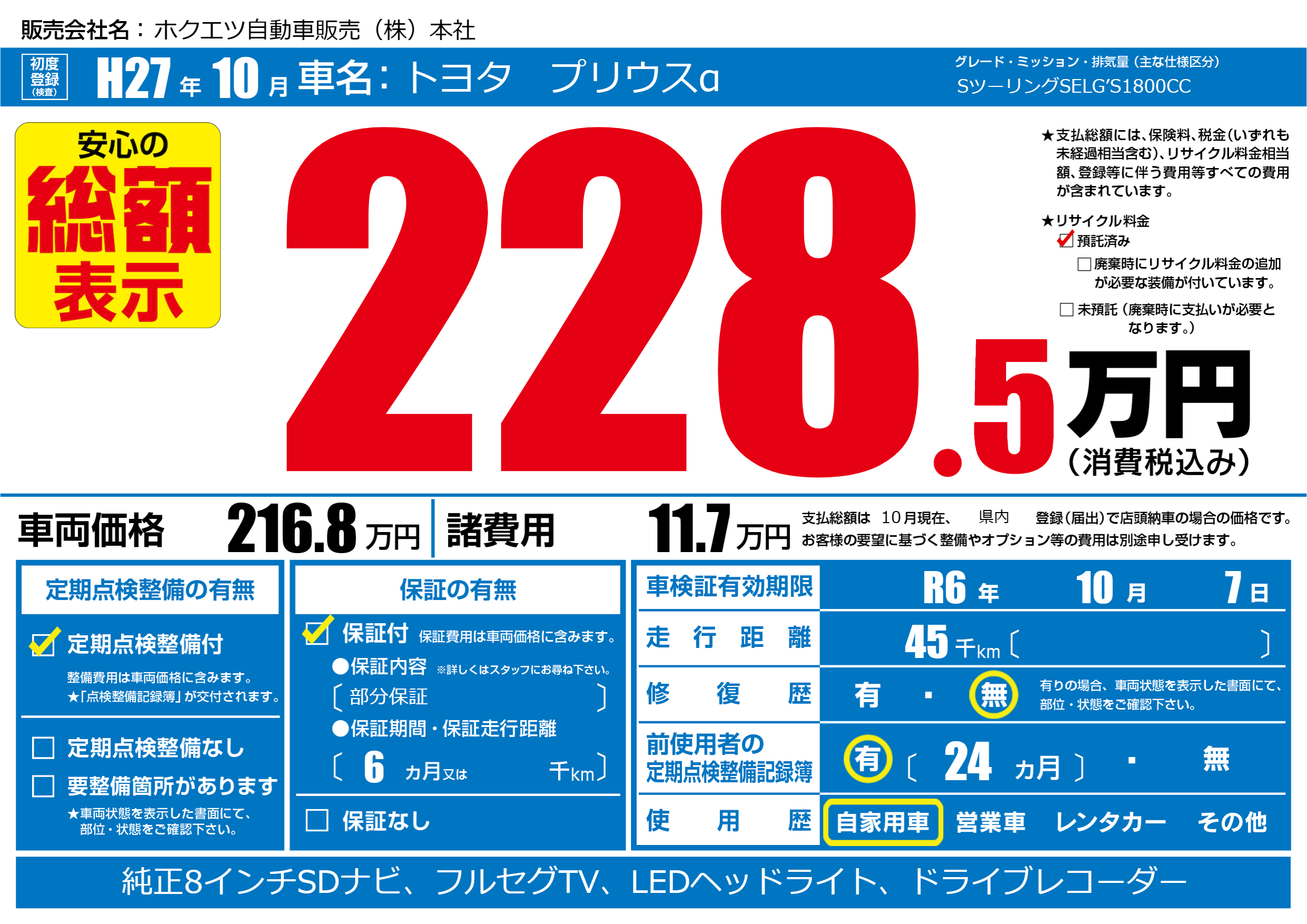 なし | 車検制限 | R6年10月7月 |