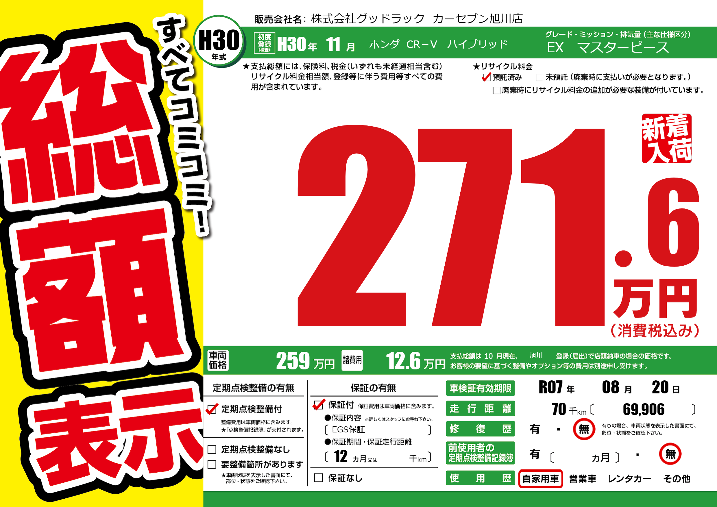 | 走行キロ | 7万km | 初年度登録 | H30年11月 |