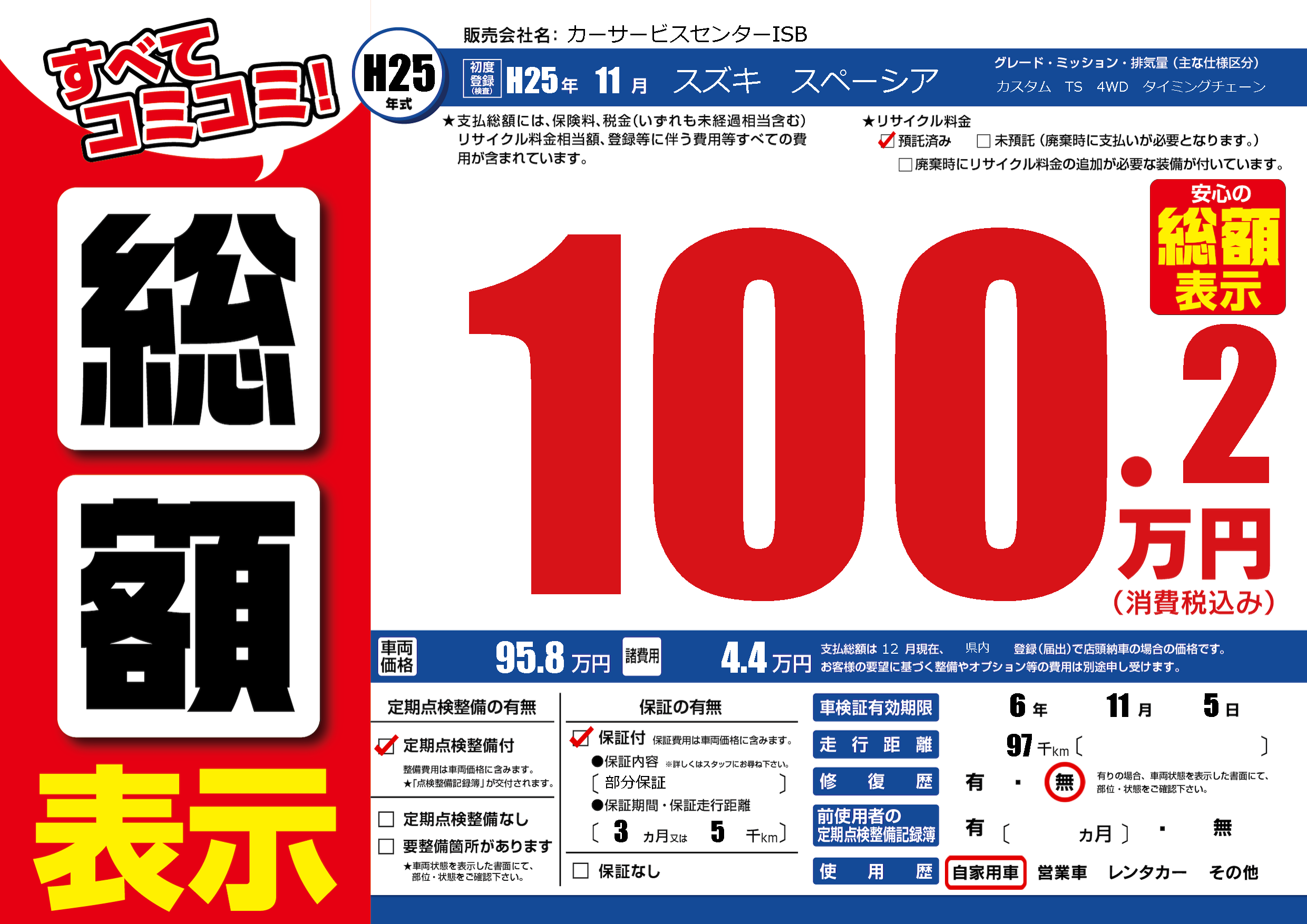 保証付き 保証内容(部分保証) 3ヶ月または(5)千kmまで |