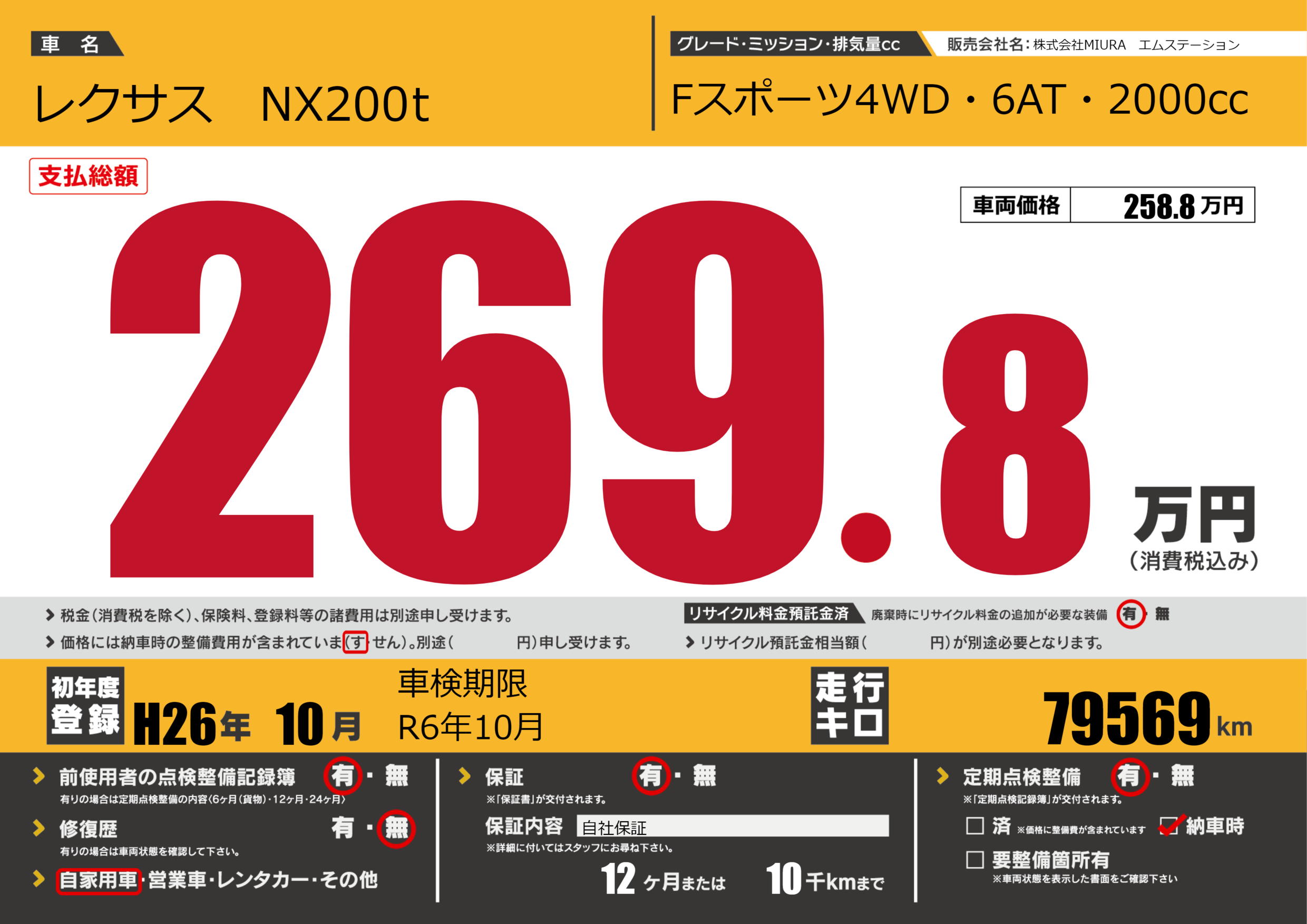 保証付き 保証内容(自社保証) 12ヶ月または(10)千kmまで |
