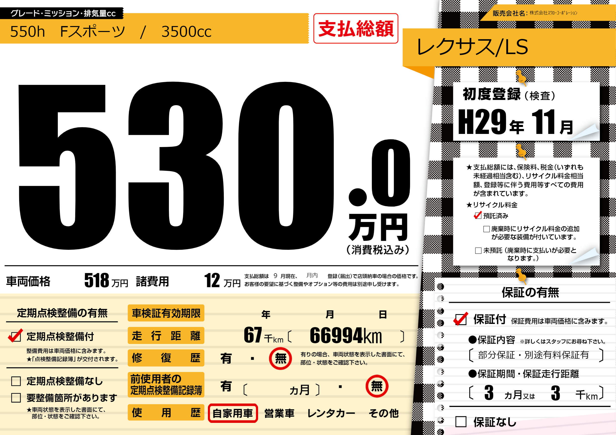 | 車名 | レクサス/LS | グレード ミッション 排気量 |