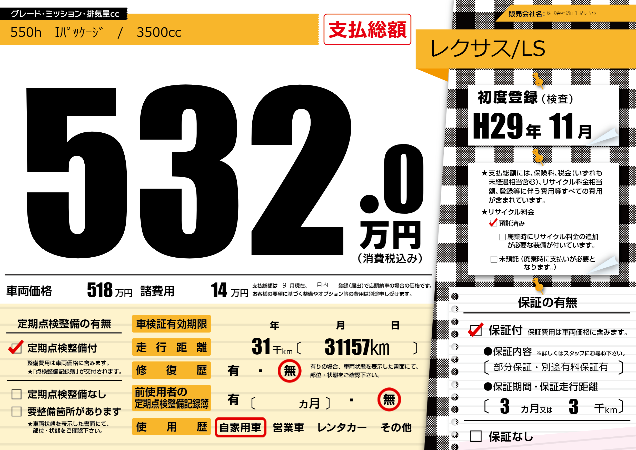 保証付き 保証内容(部分保証・別途有料保証有) 3ヶ月または(3)千kmまで |