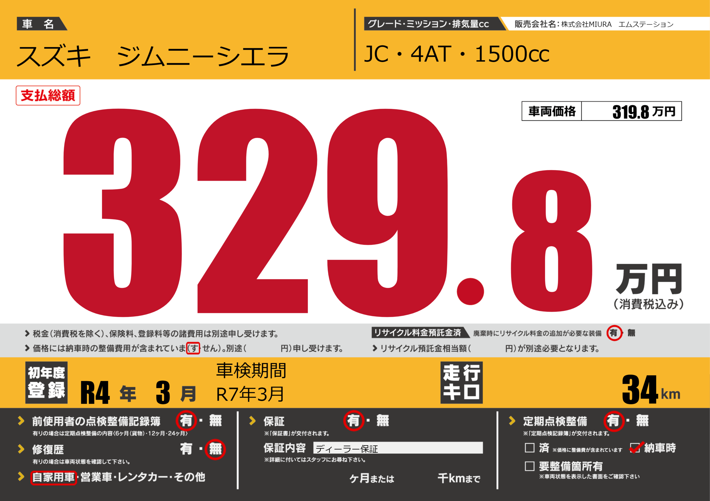 | 走行キロ | 3.4万km | 初年度登録 | R4年3月 |