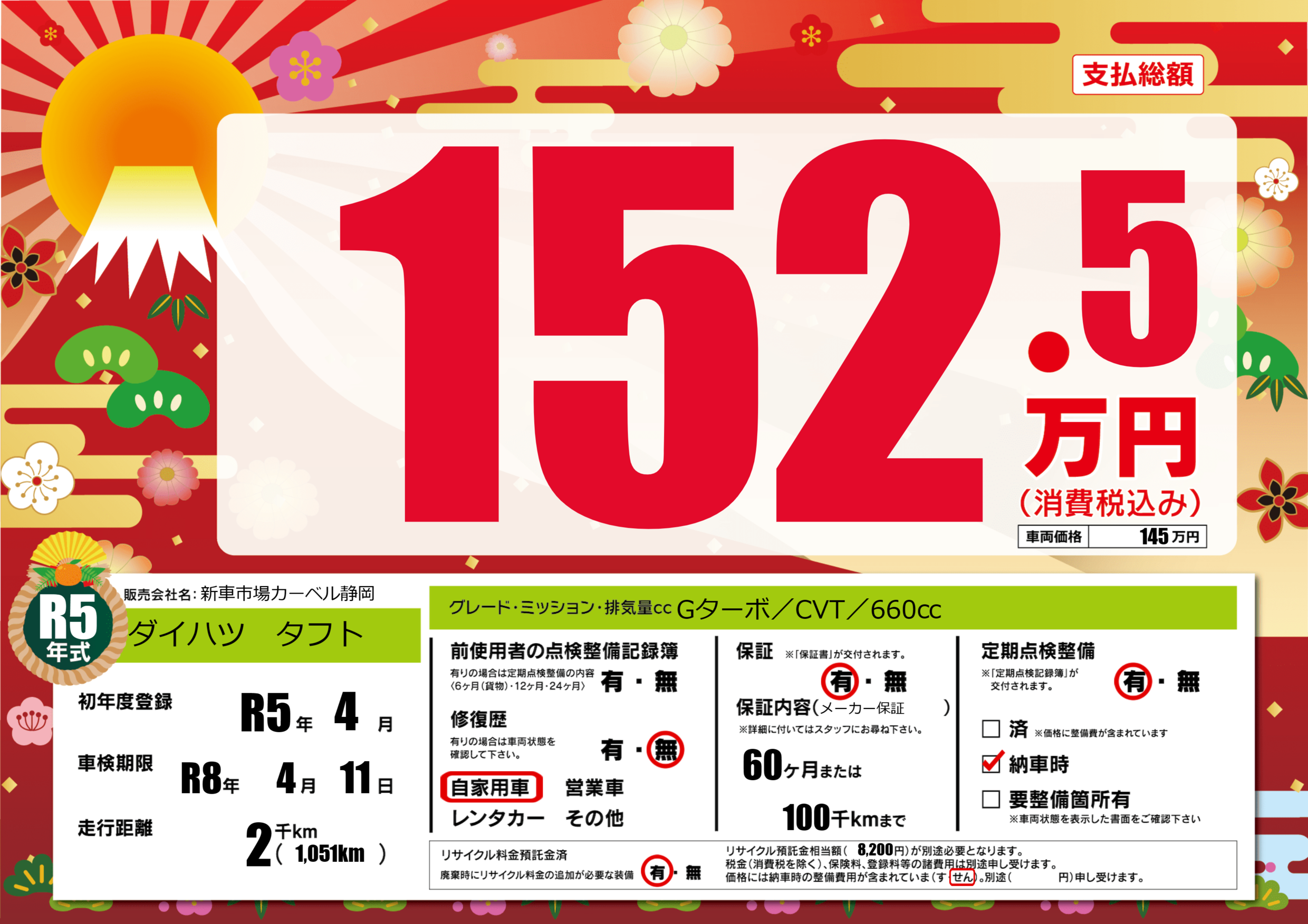 | 走行キロ | 0.2万km | 初年度登録 | R5年4月 |