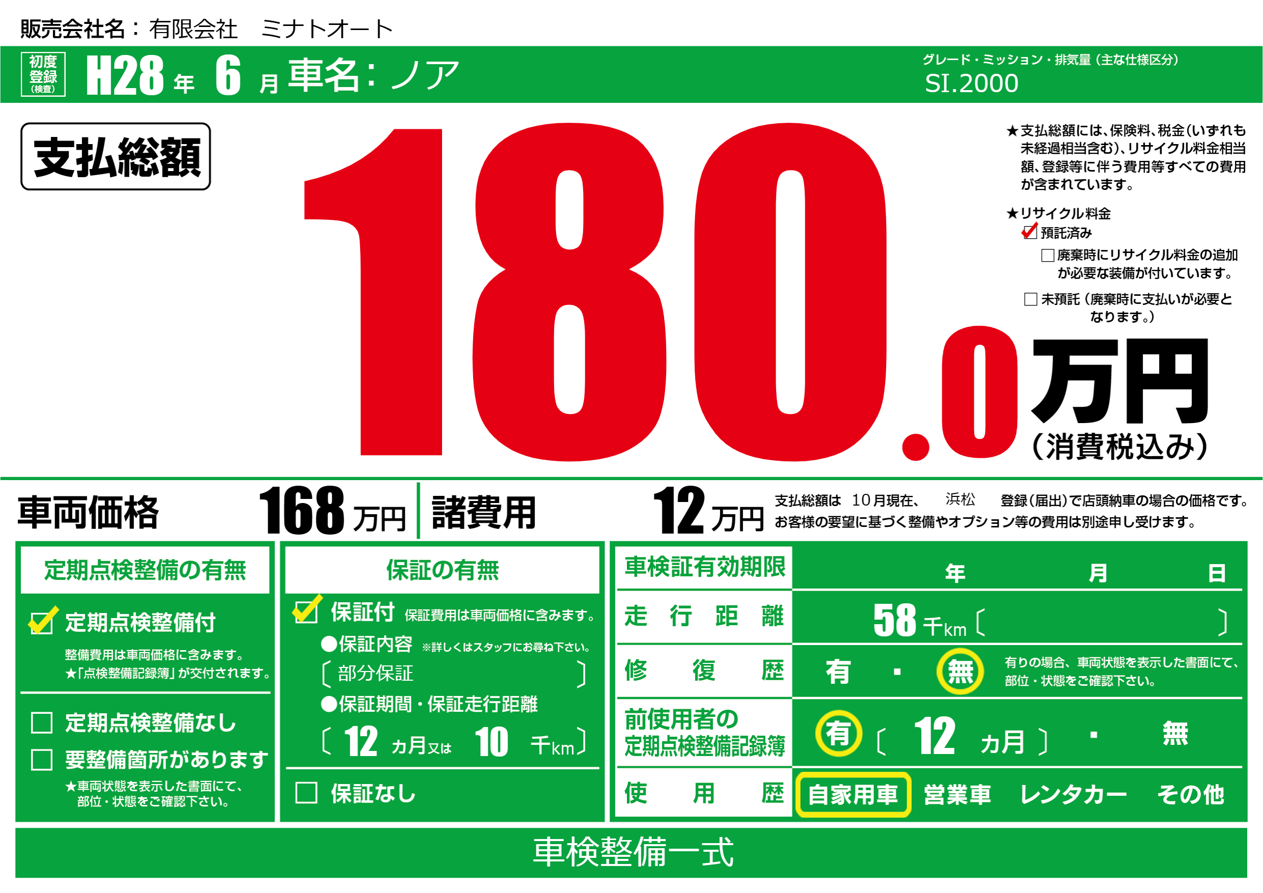 保証付き 保証内容(部分保証) 12ヶ月または(10)千kmまで |