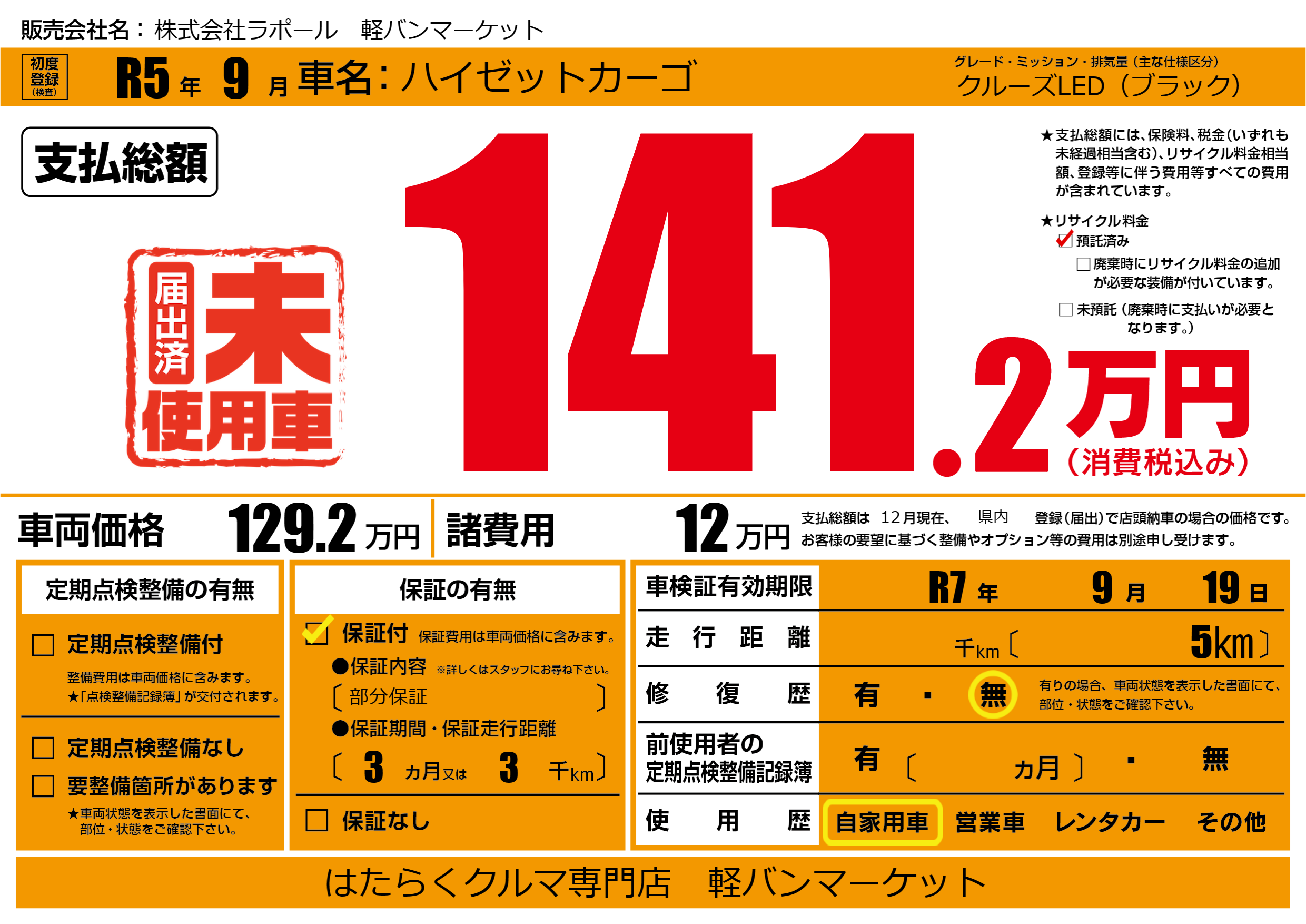 なし | 車検制限 | R7年9月19月 |