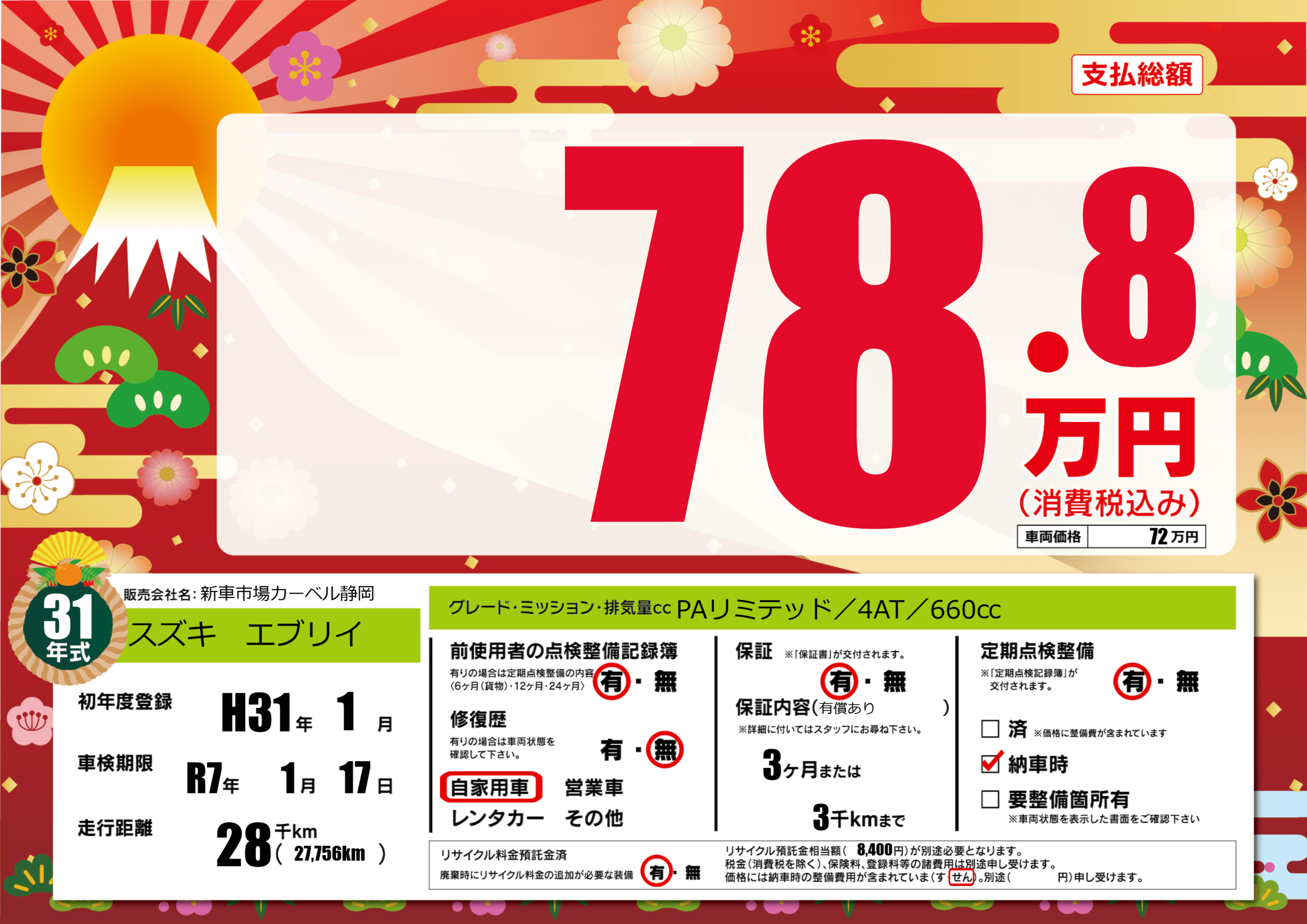 | 初年度登録 | H31年1月 | ||