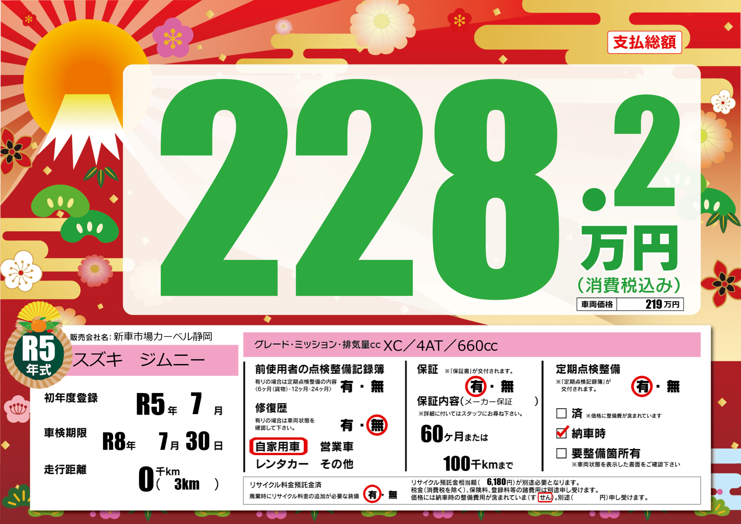 | 走行キロ | - | 初年度登録 | R5年7月 |