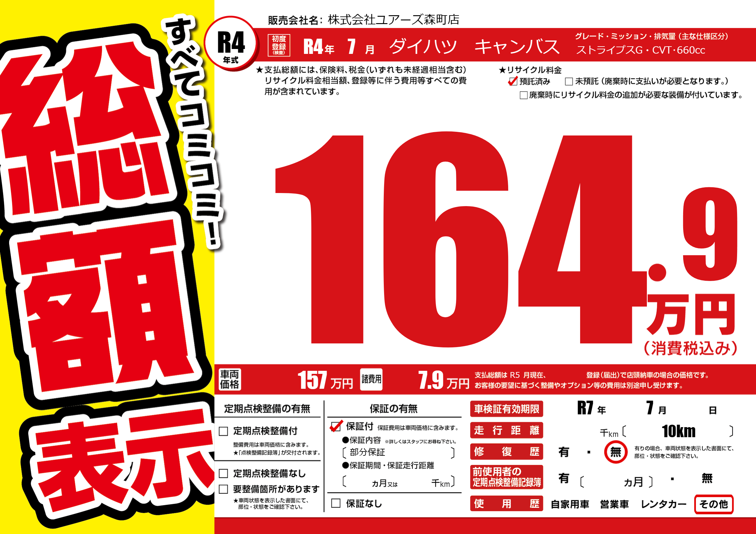 なし | 車検制限 | R7年7月---月 |