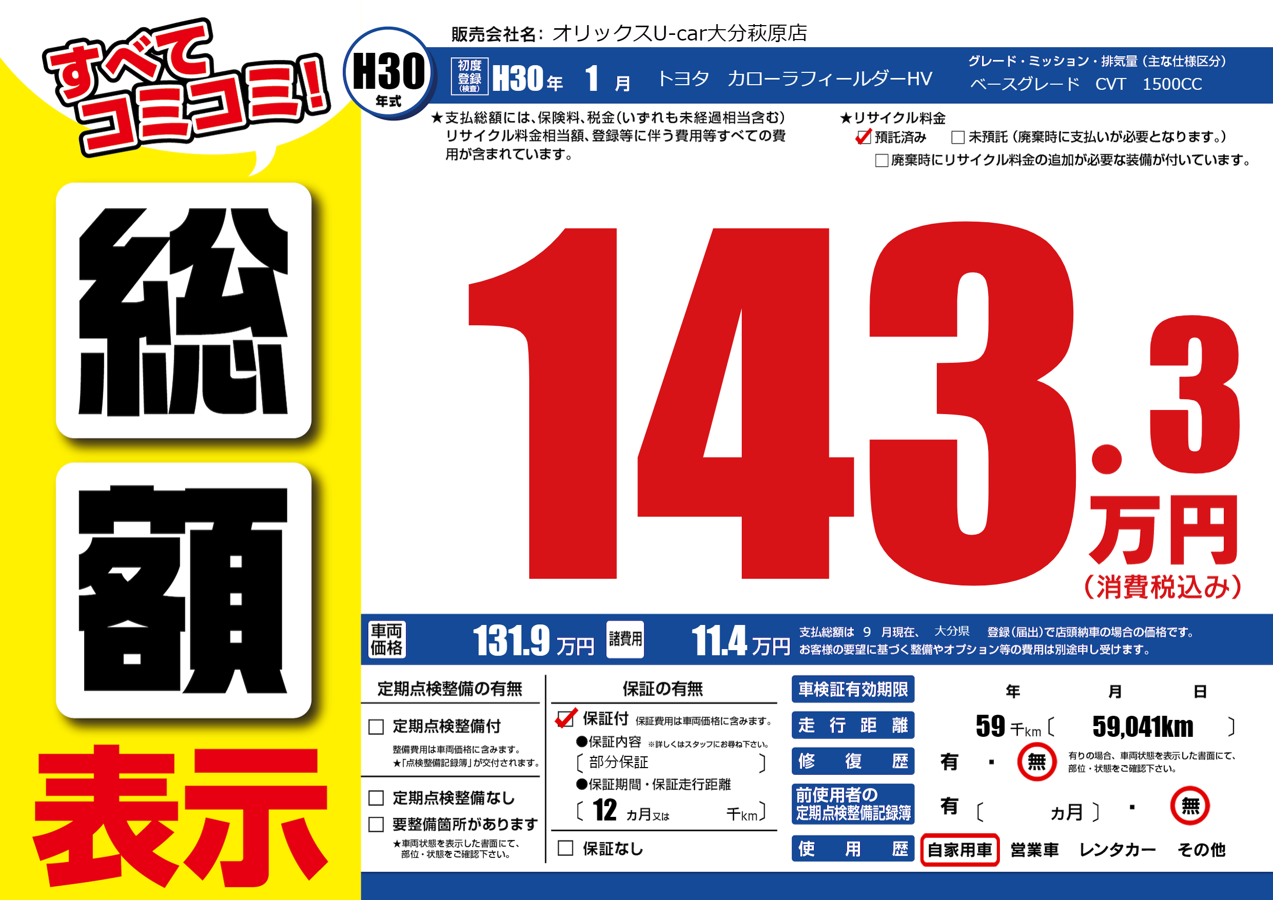 | 走行キロ | 5.9万km | 初年度登録 | H30年1月 |