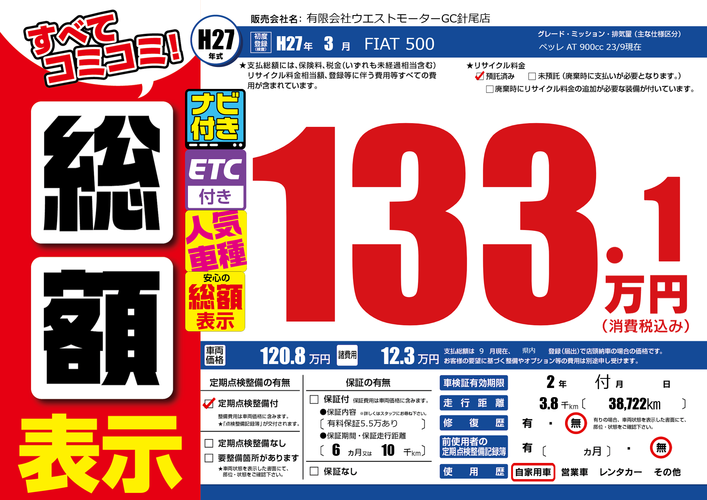 | 初年度登録 | H27年3月 | ||