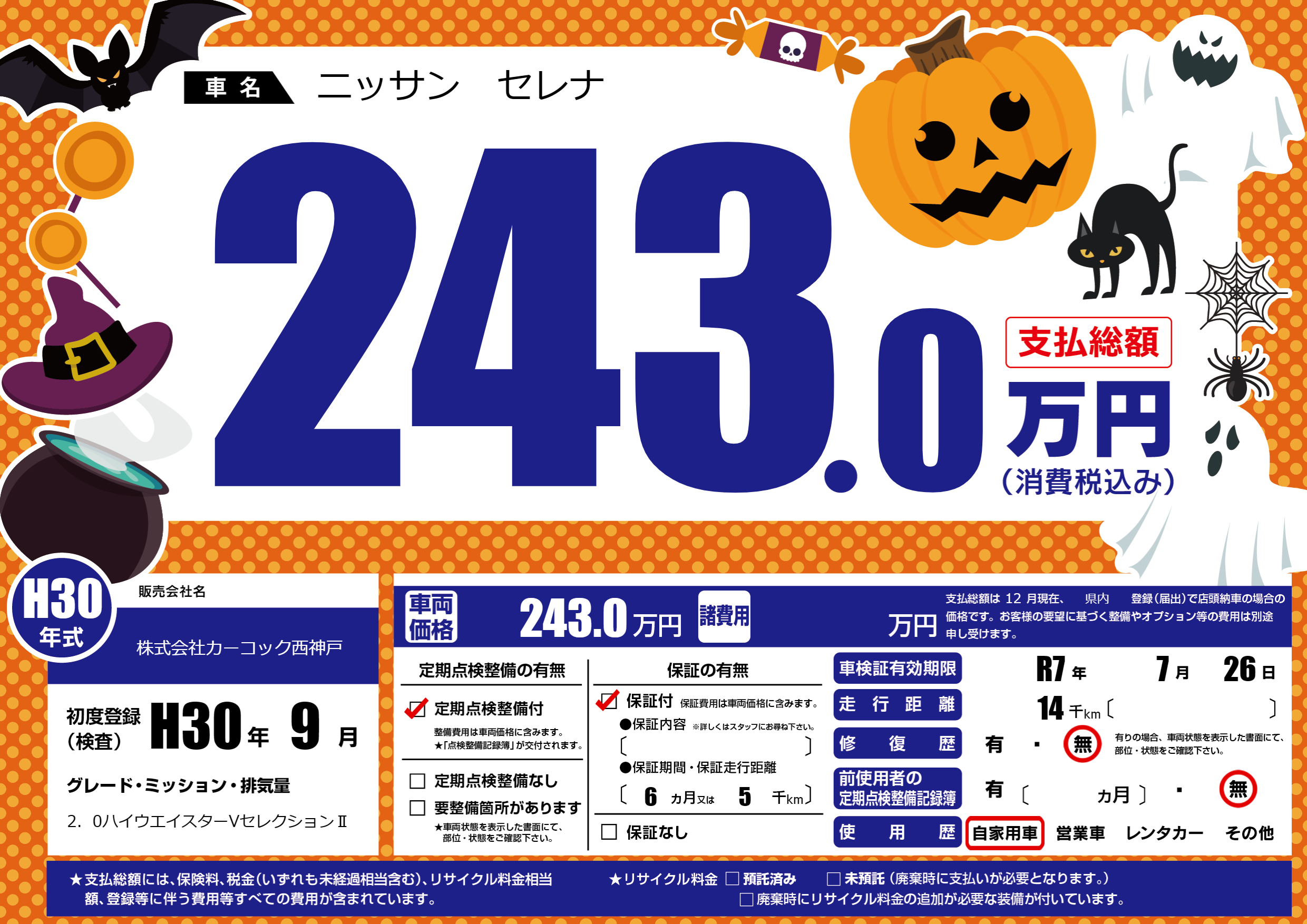 | 走行キロ | 1.4万km | 初年度登録 | H30年9月 |