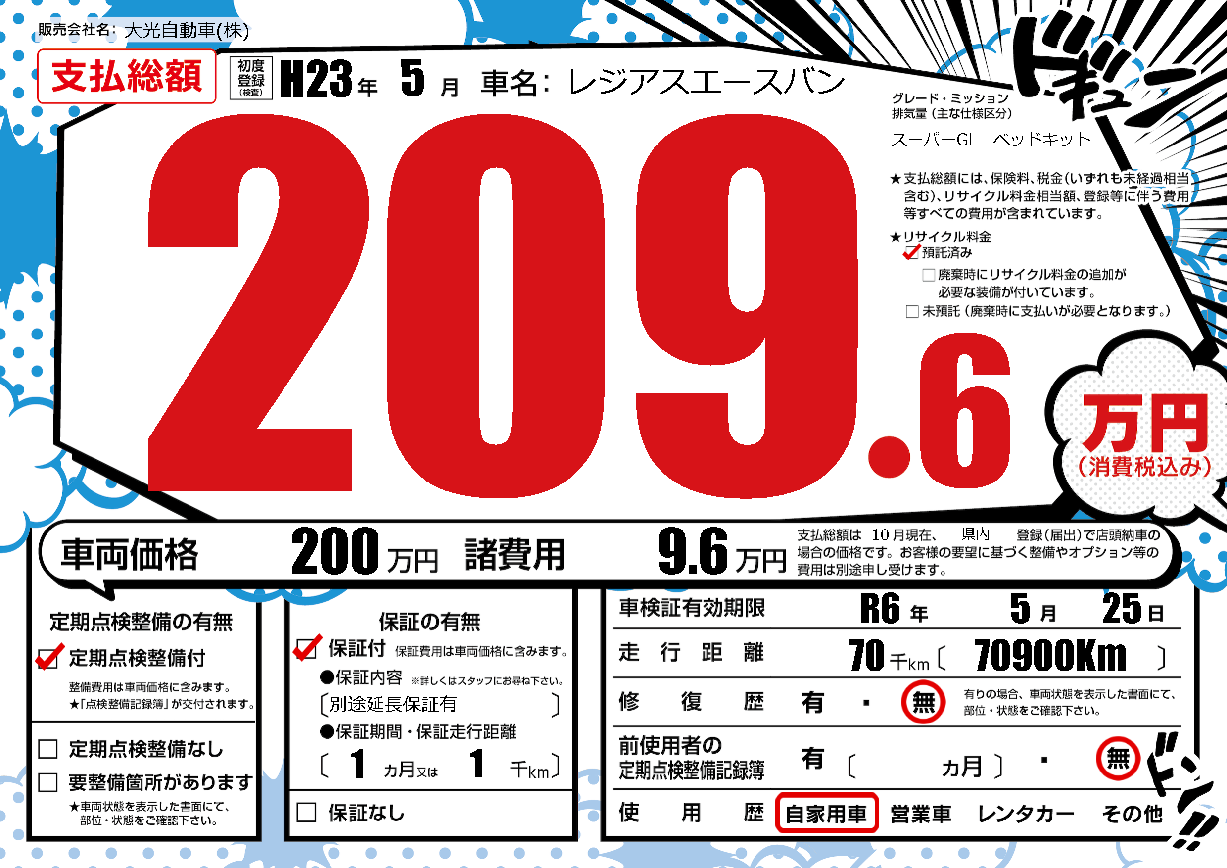 | 走行キロ | 7万km | 初年度登録 | H23年5月 |