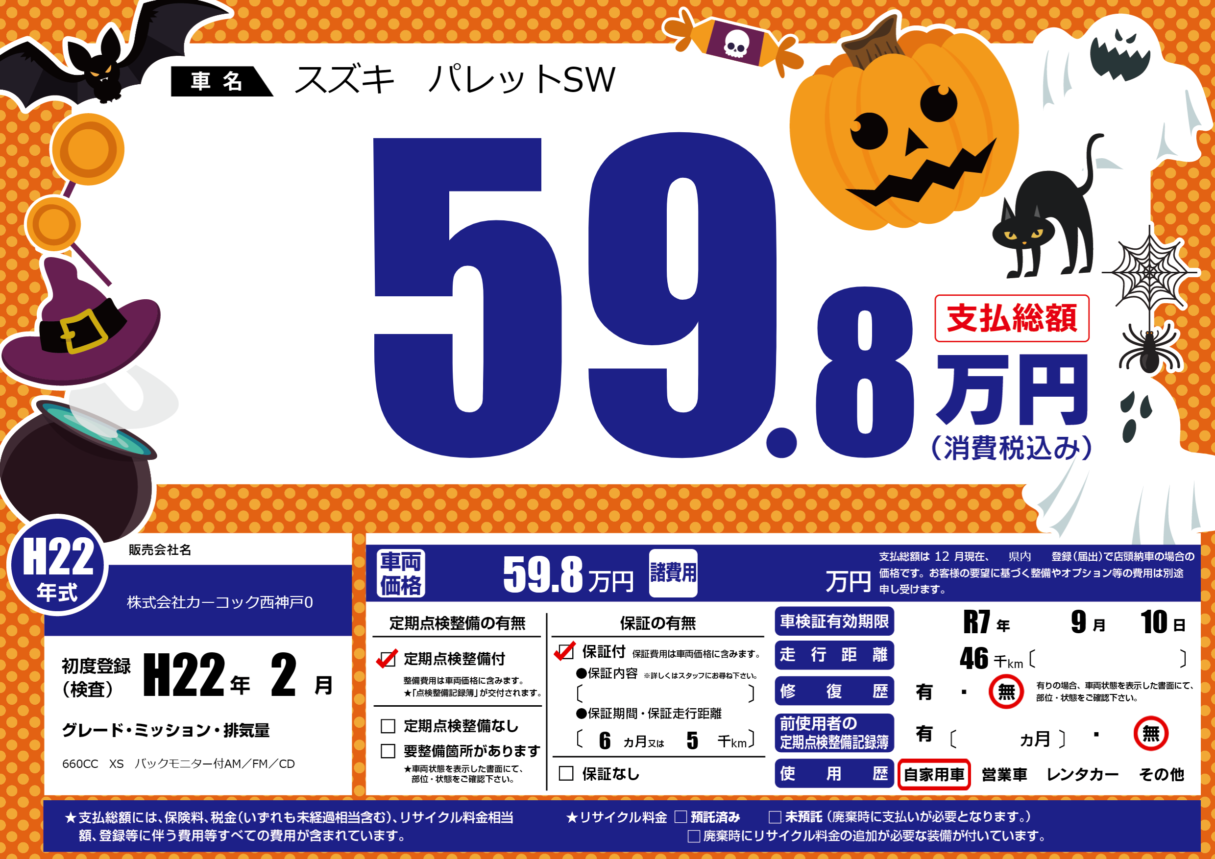 | 走行キロ | 4.6万km | 初年度登録 | H22年2月 |