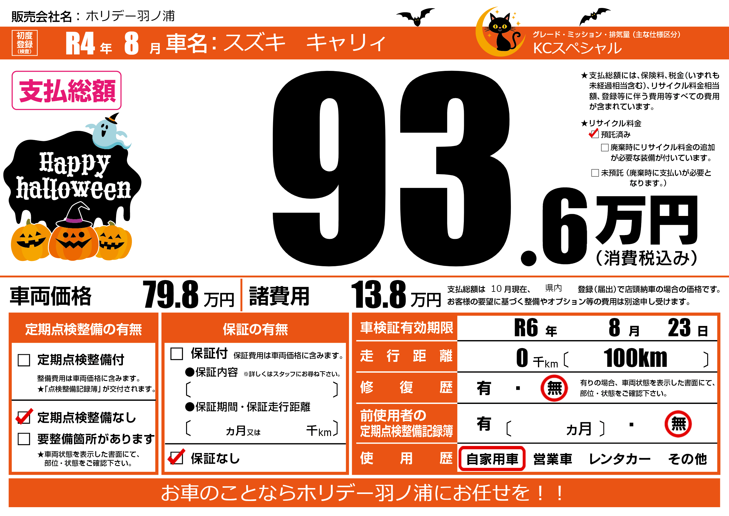 | 走行キロ | - | 初年度登録 | R4年8月 |