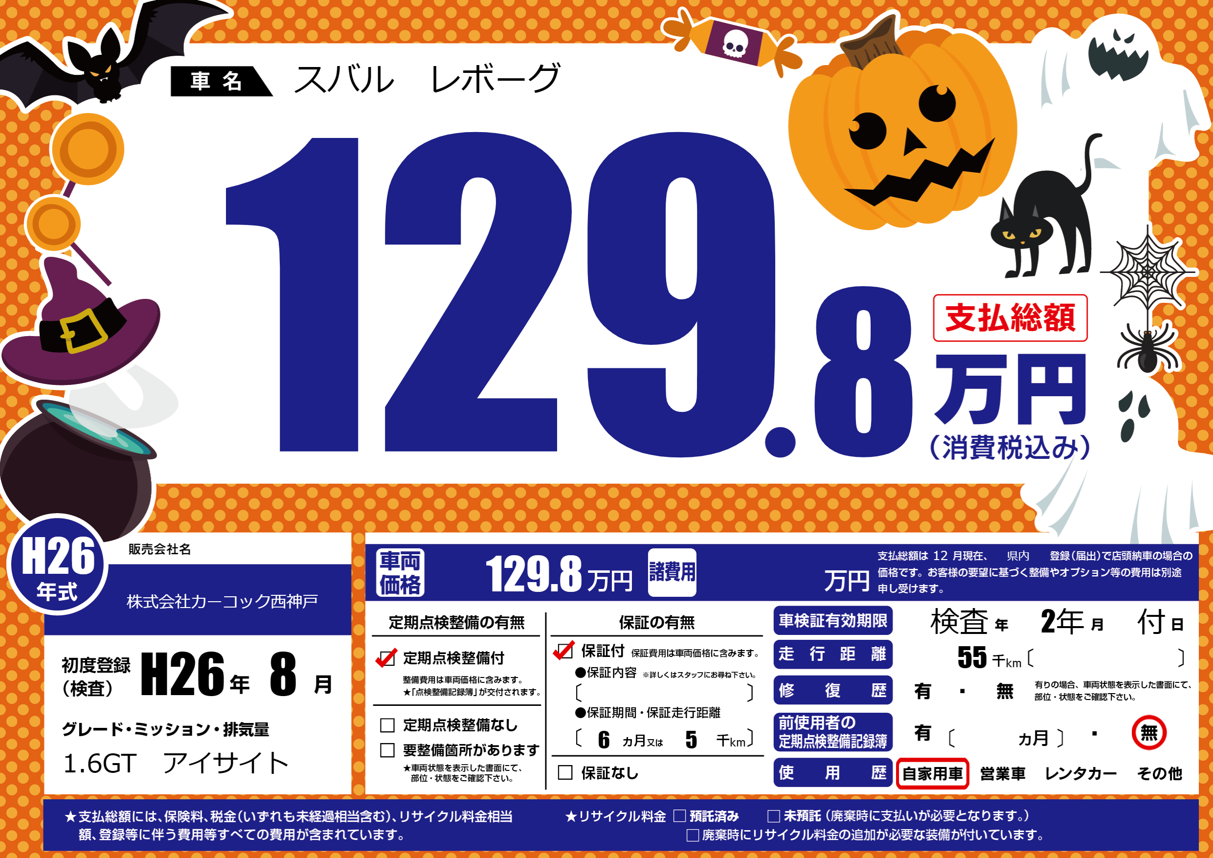 | 走行キロ | 5.5万km | 初年度登録 | H26年8月 |