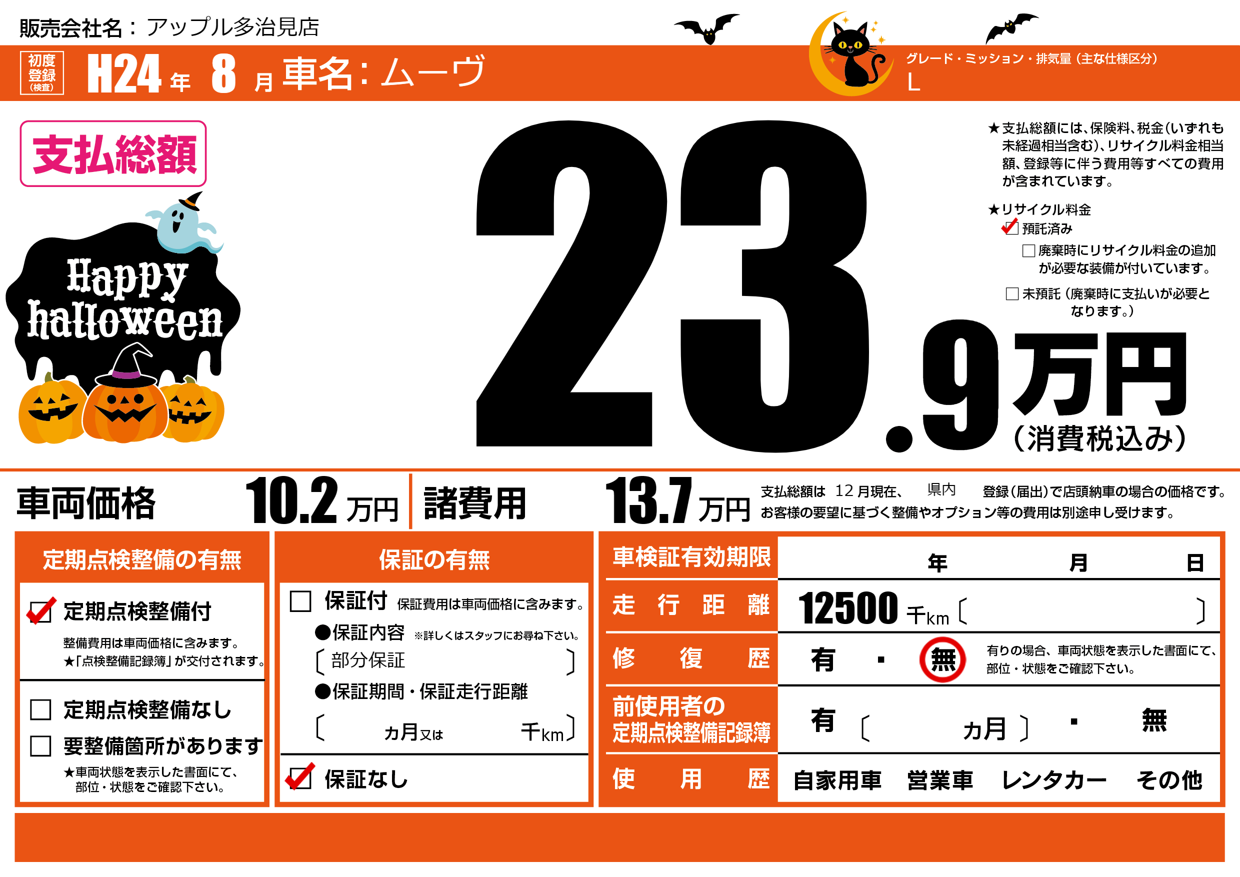 あり | リサイクル預託金相当額 | ( 0円)が別途必要 |