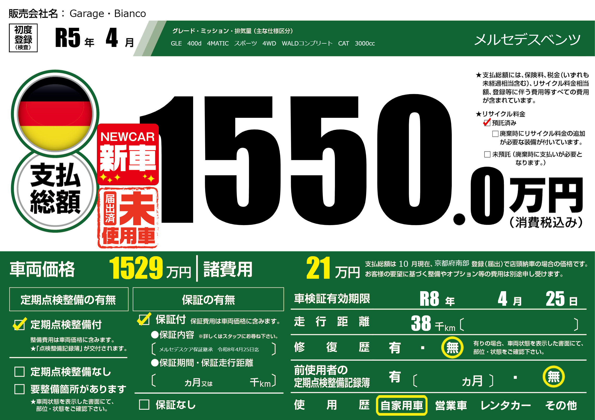 保証内容(メルセデスケア保証継承 令和8年4月25日迄) ヶ月または千km