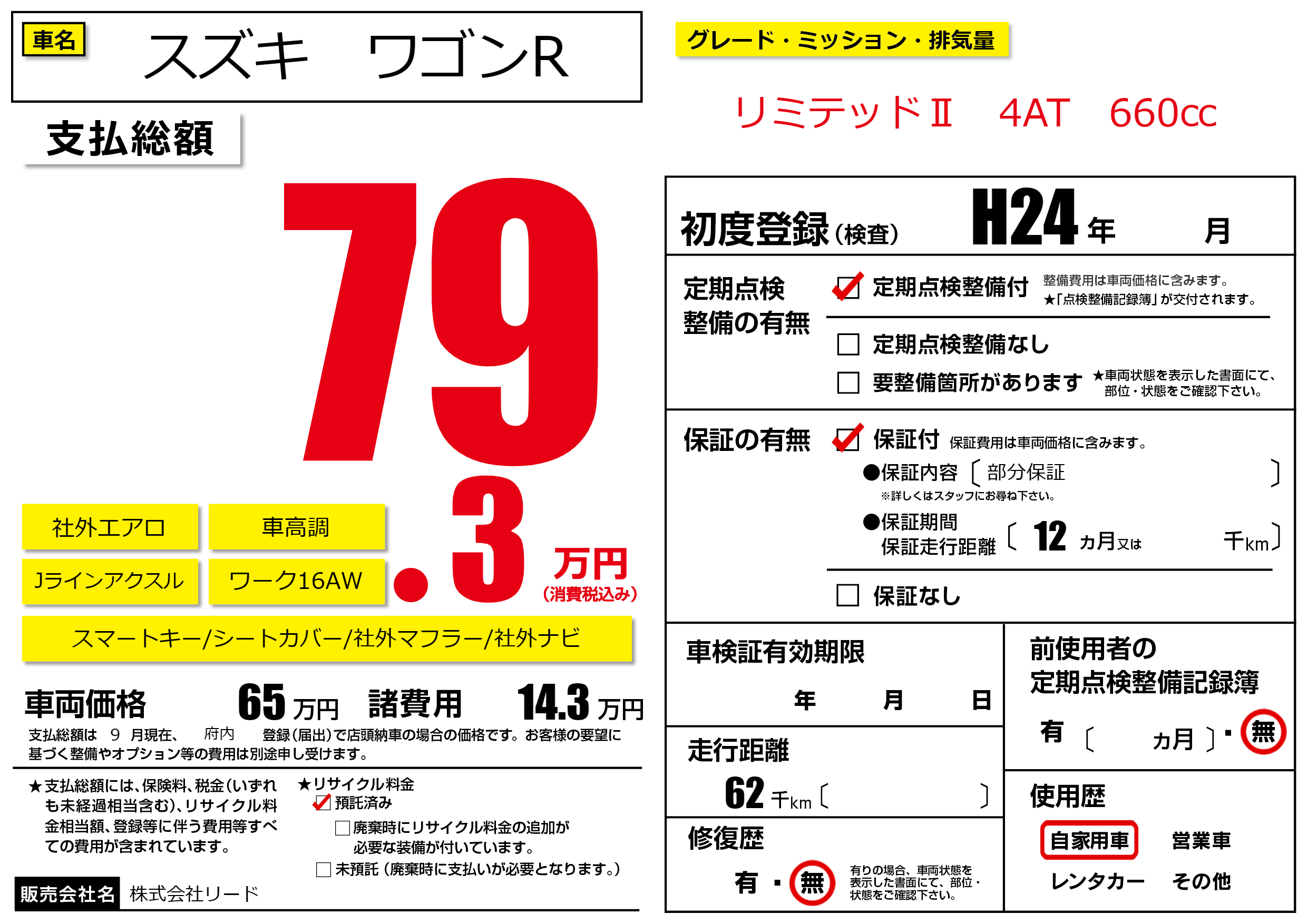 | 初年度登録 | H24年 | ||