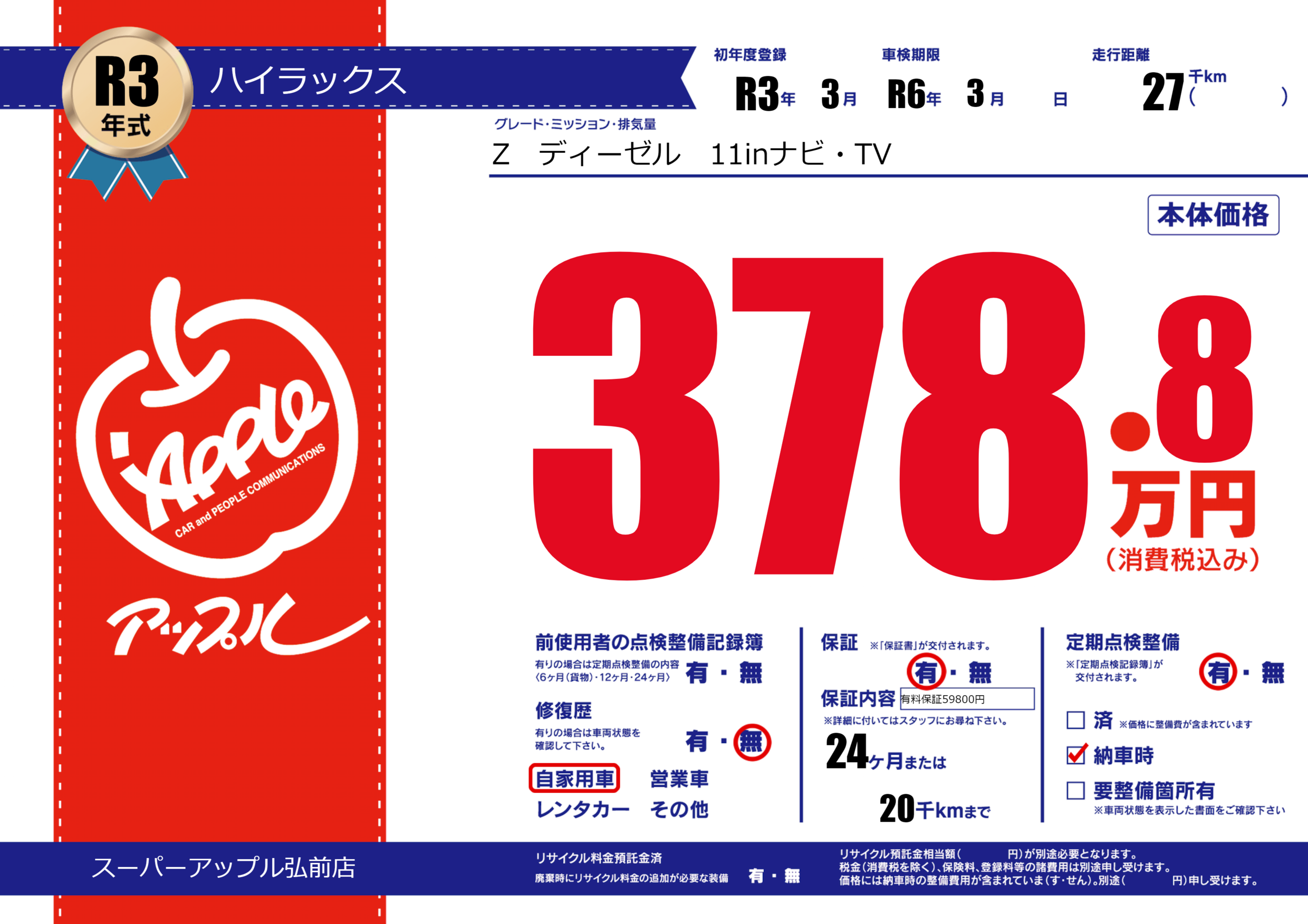 | 走行キロ | 2.7万km | 初年度登録 | R3年3月 |