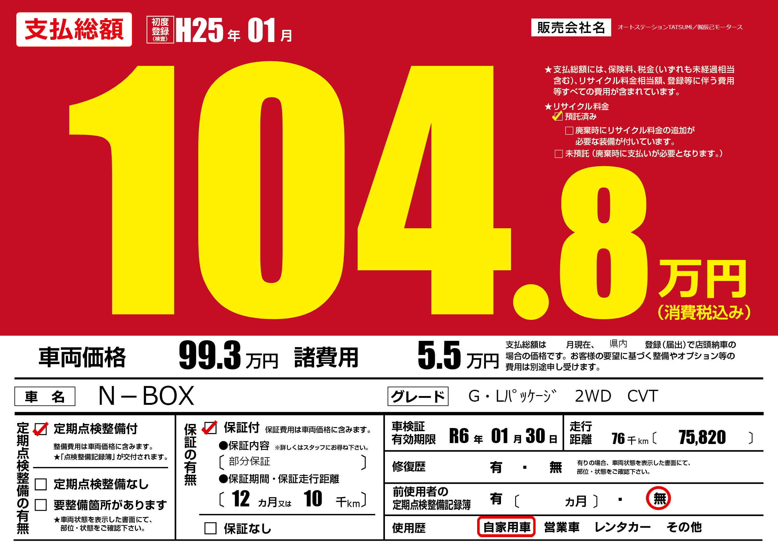 | 走行キロ | 7.6万km | 初年度登録 | H25年01月 |