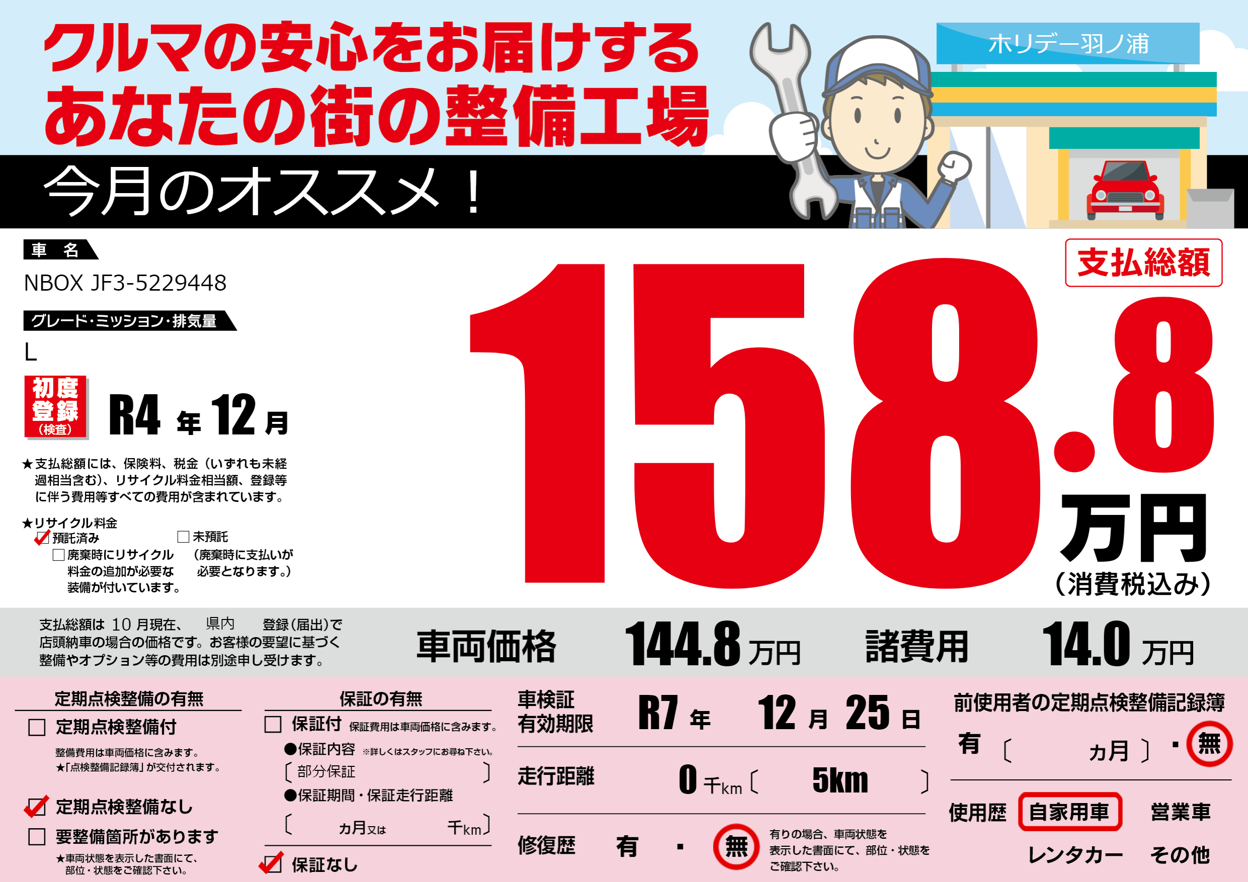 | 車名 | NBOX JF3-5229448 | グレード ミッション 排気量 |