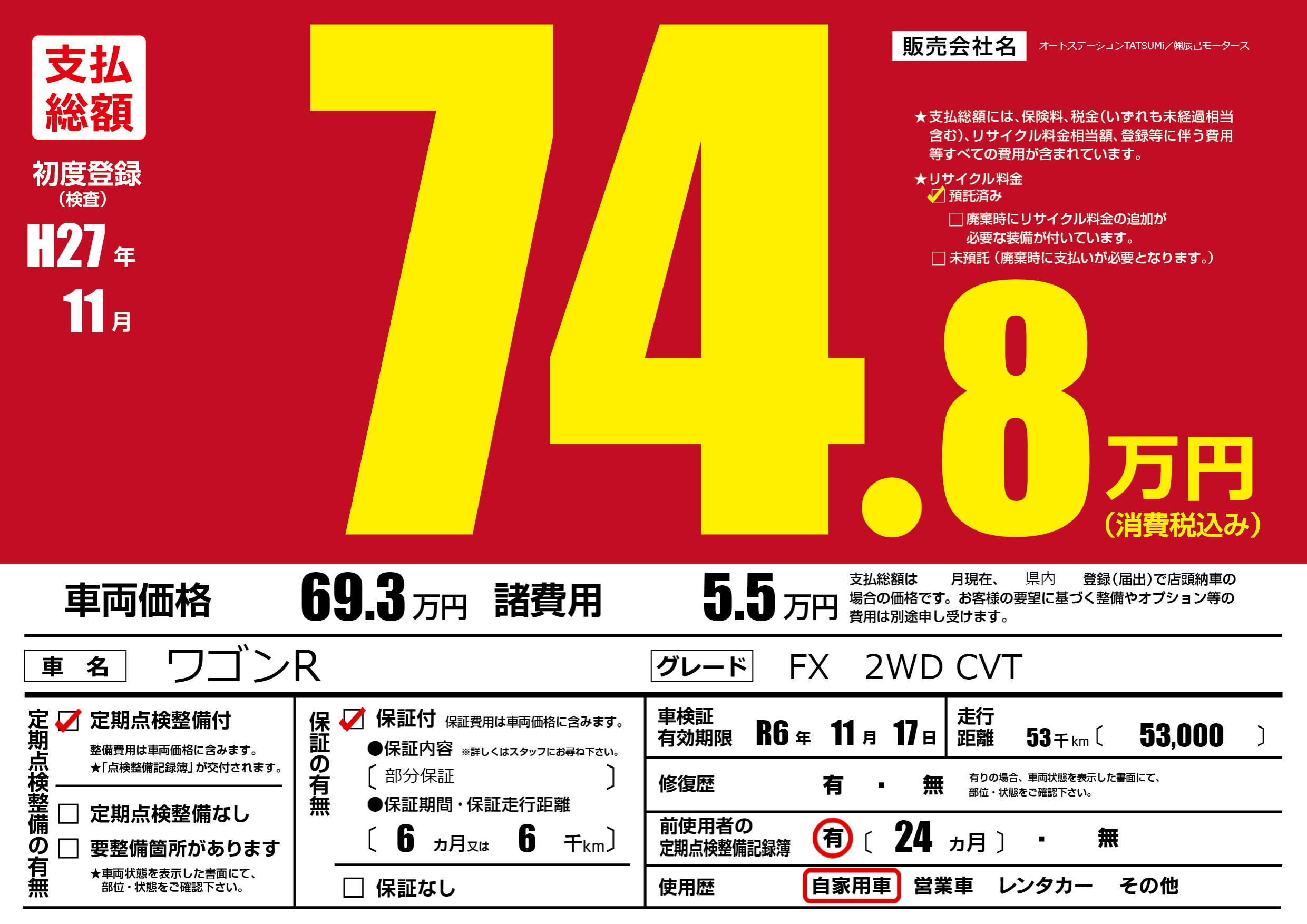 | 車名 | ワゴンR | グレード ミッション 排気量 |