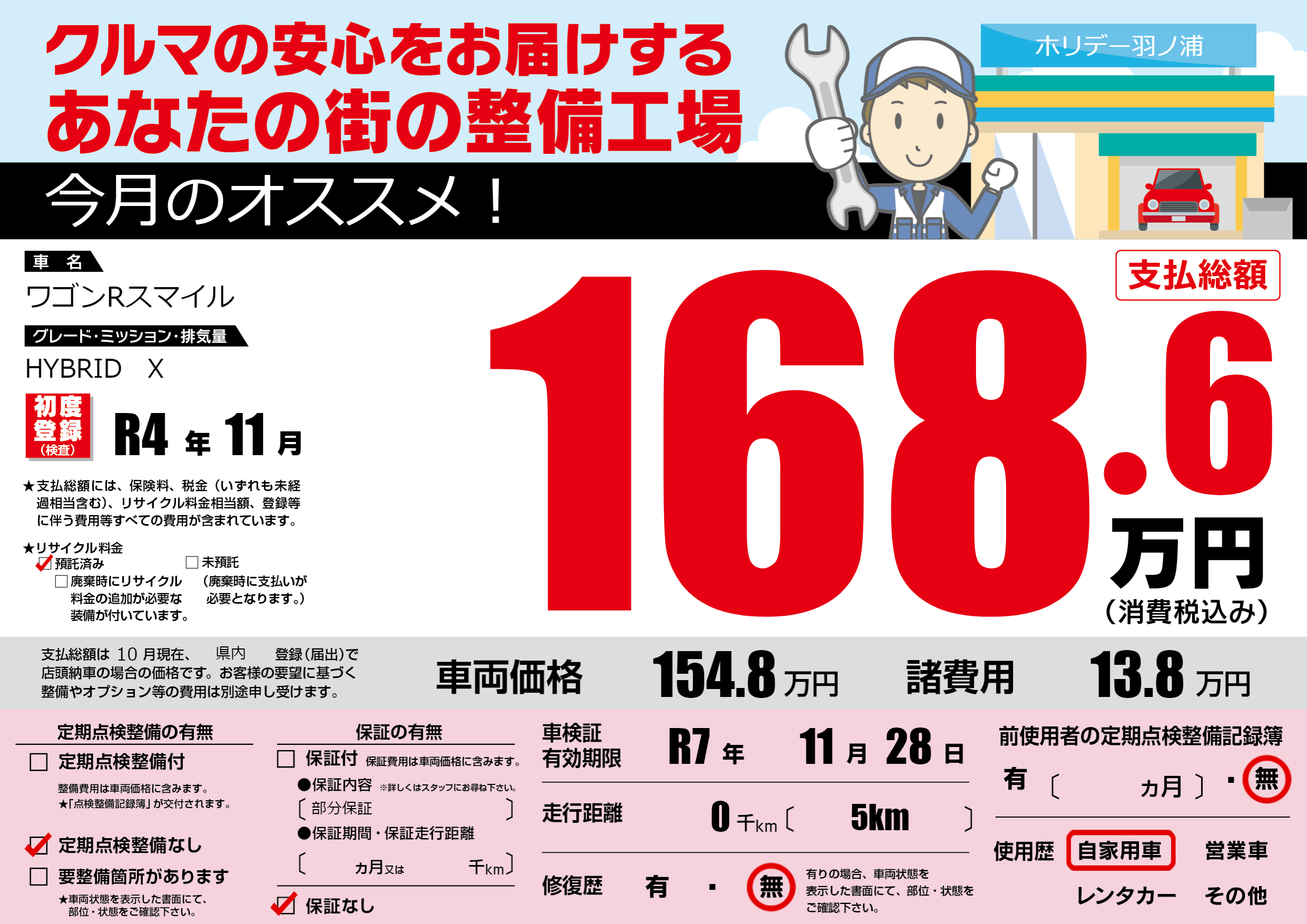 | 車名 | ワゴンRスマイル | グレード ミッション 排気量 |