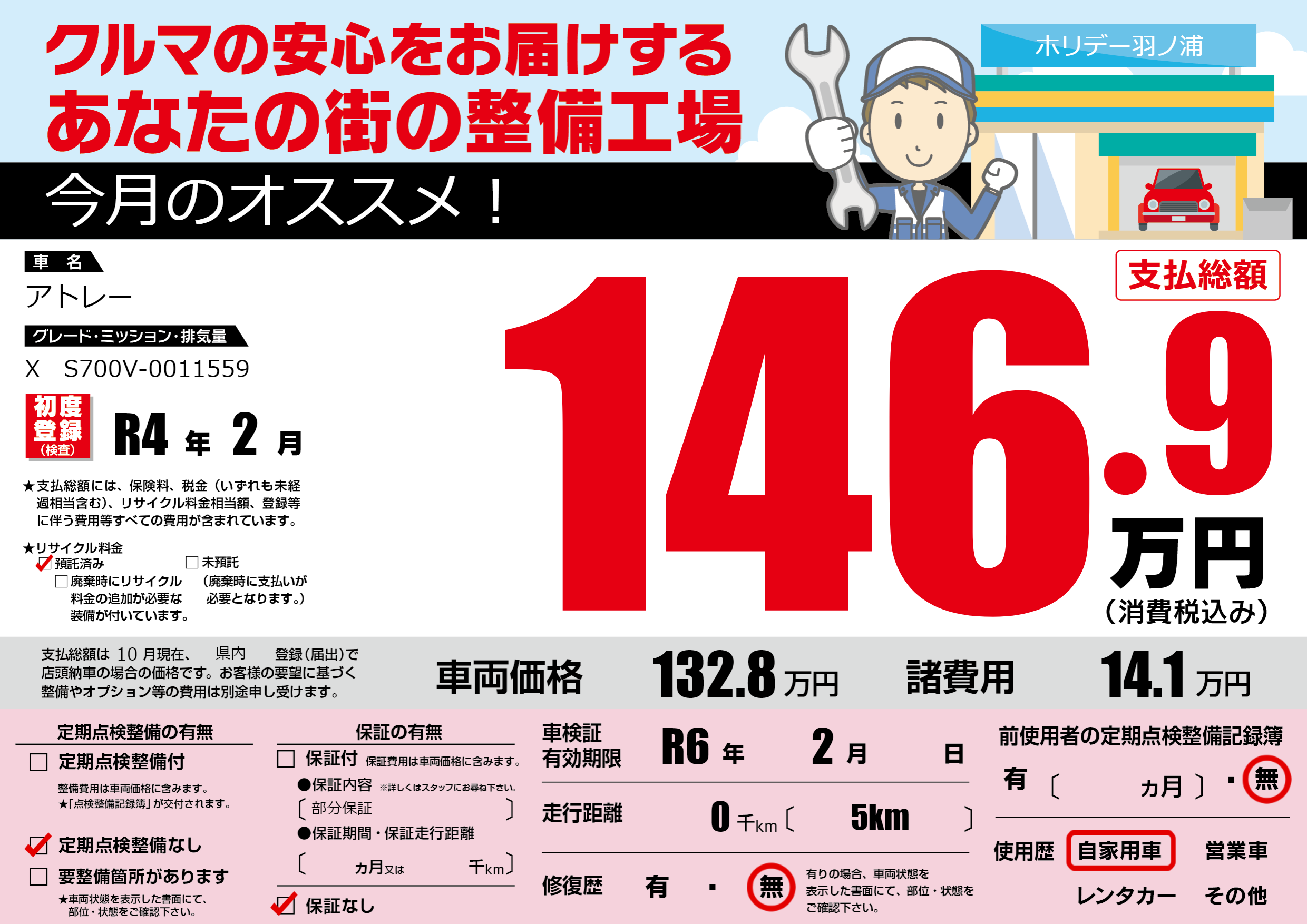 | 車名 | アトレー | グレード ミッション 排気量 |