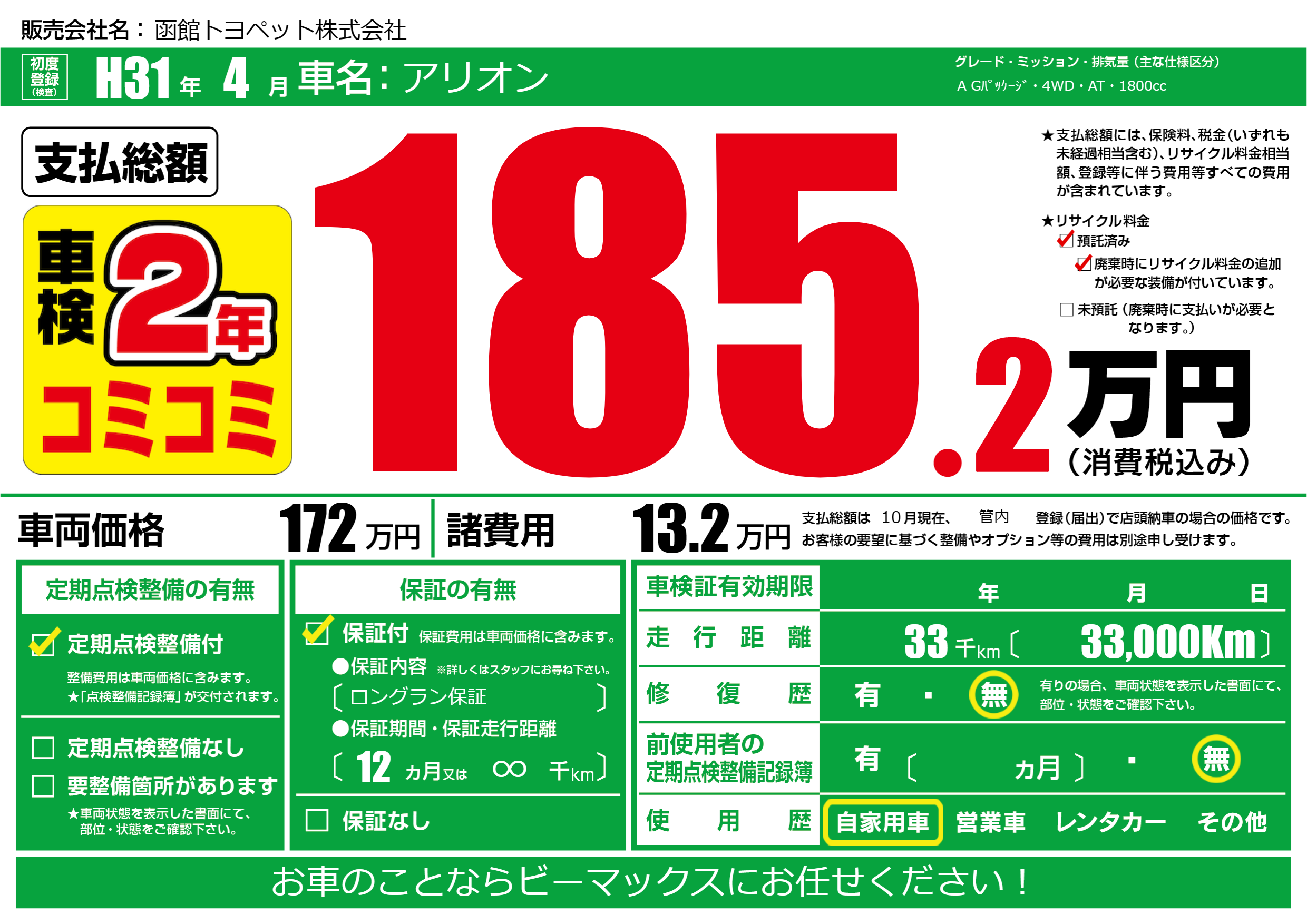 | 定期点検整備 | 定期点検整備あり | ||