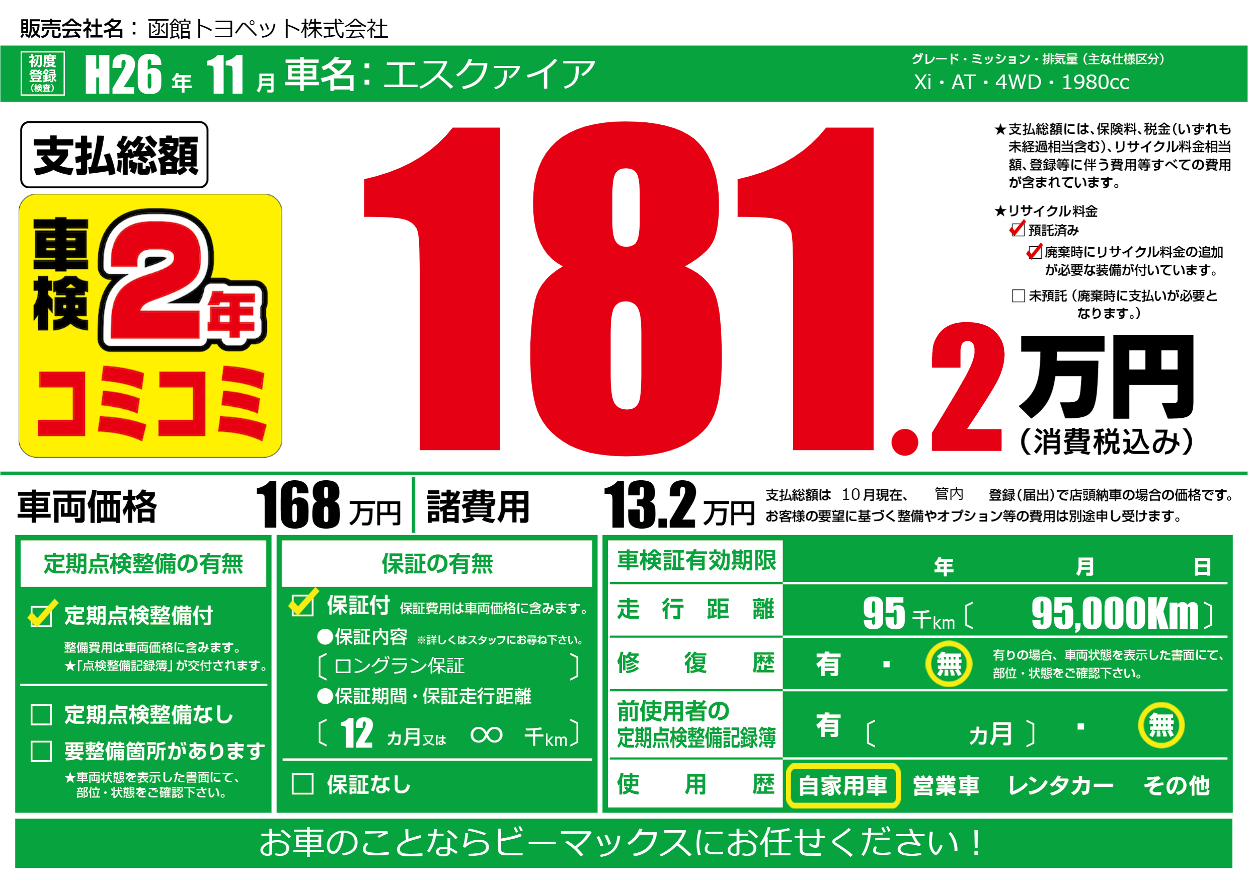 | 定期点検整備 | 定期点検整備あり | ||