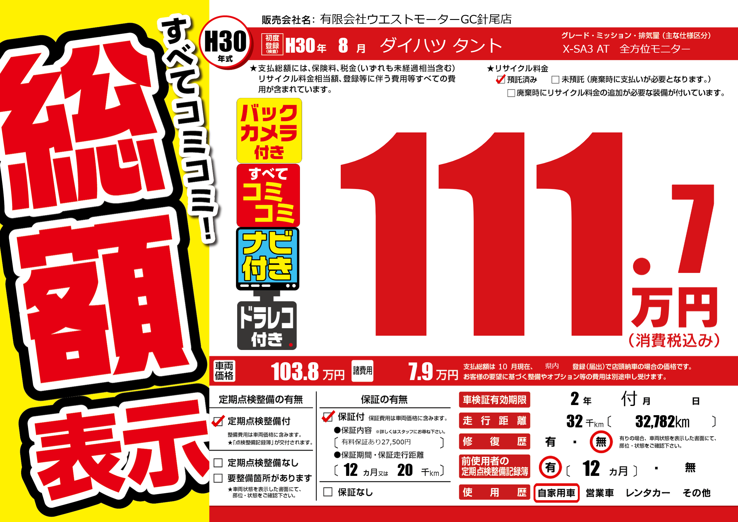 | 初年度登録 | H30年8月 | ||