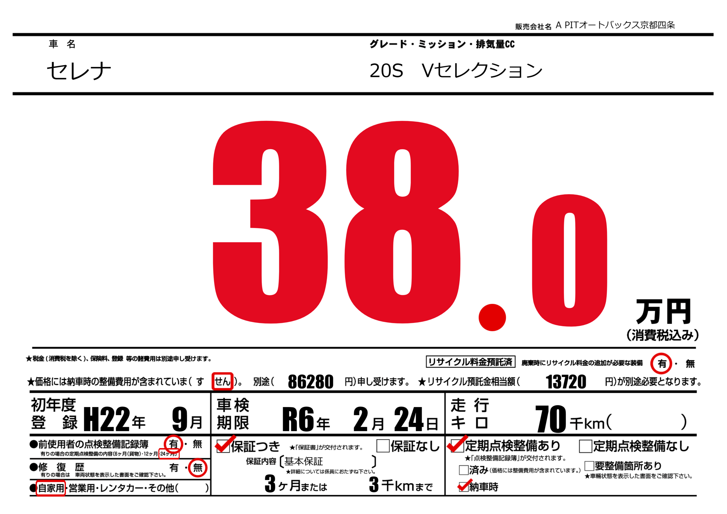 | 定期点検整備 | 定期点検整備あり 納車時あり | ||