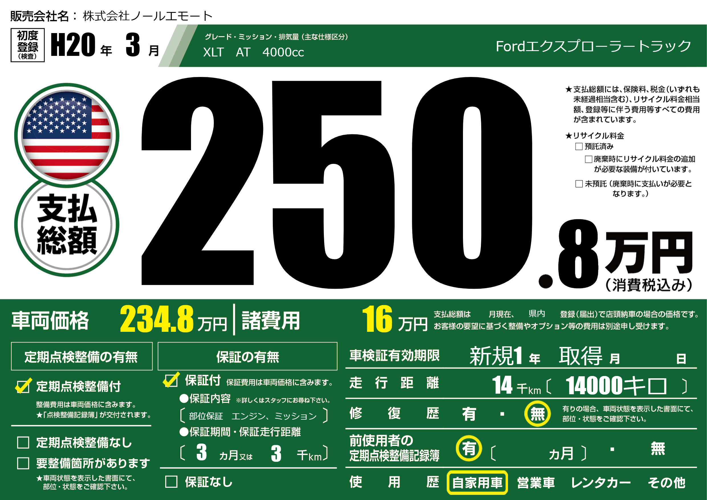 なし | 車検制限 | 新規1年取得月---月 |
