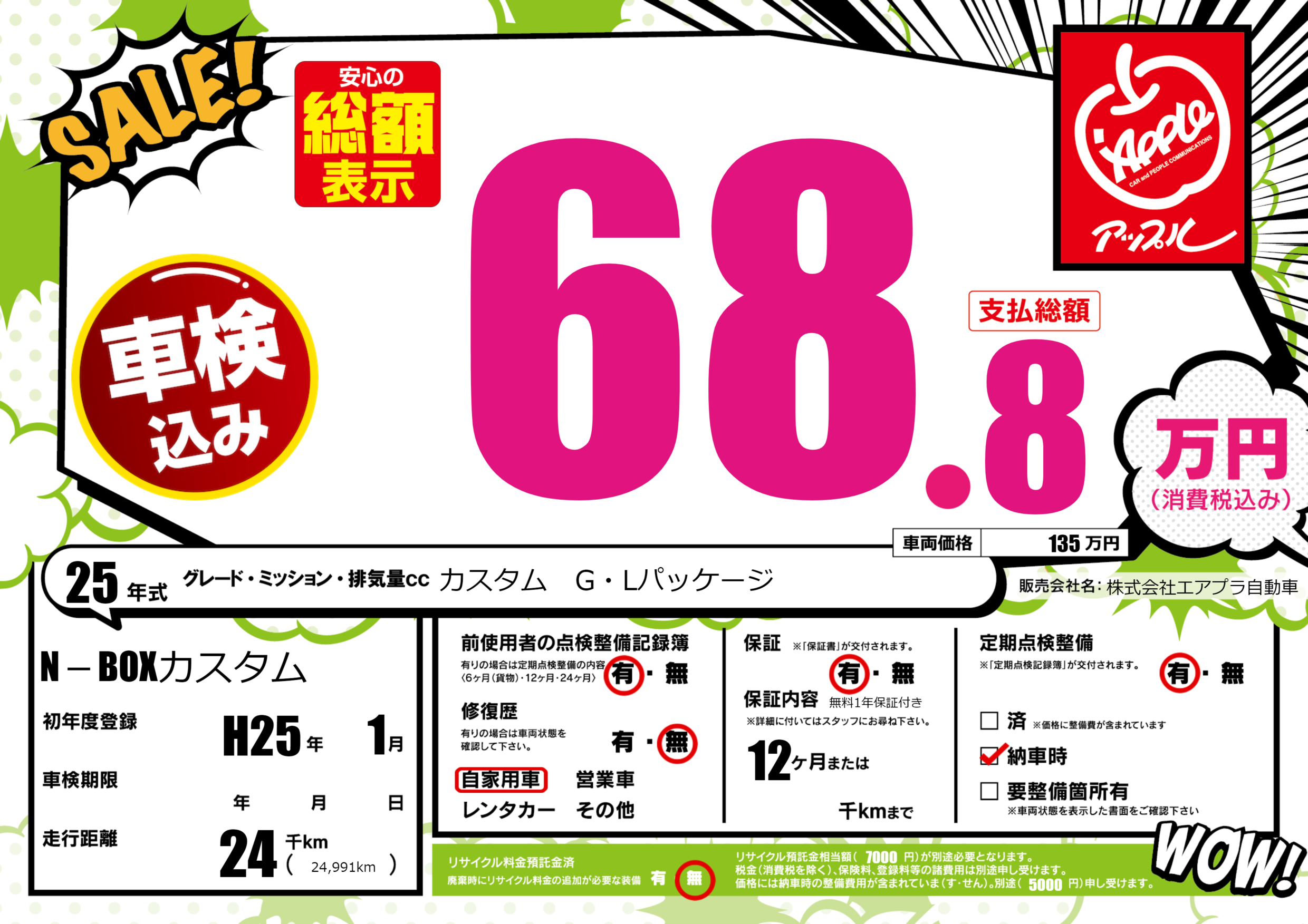 | 車名 | N-BOXカスタム | グレード ミッション 排気量 |