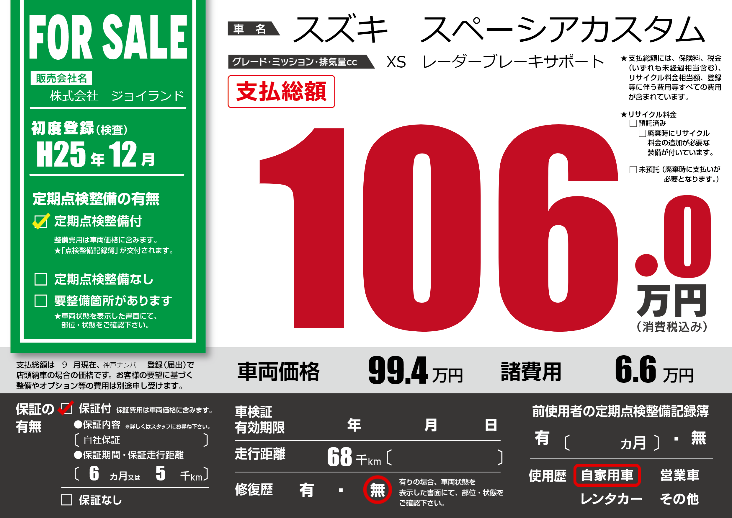 保証付き 保証内容(自社保証) 6ヶ月または5千km |