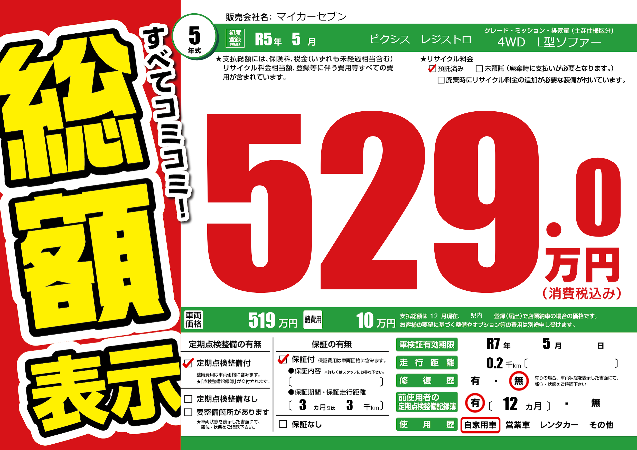 | 走行キロ | - | 初年度登録 | R5年5月 |