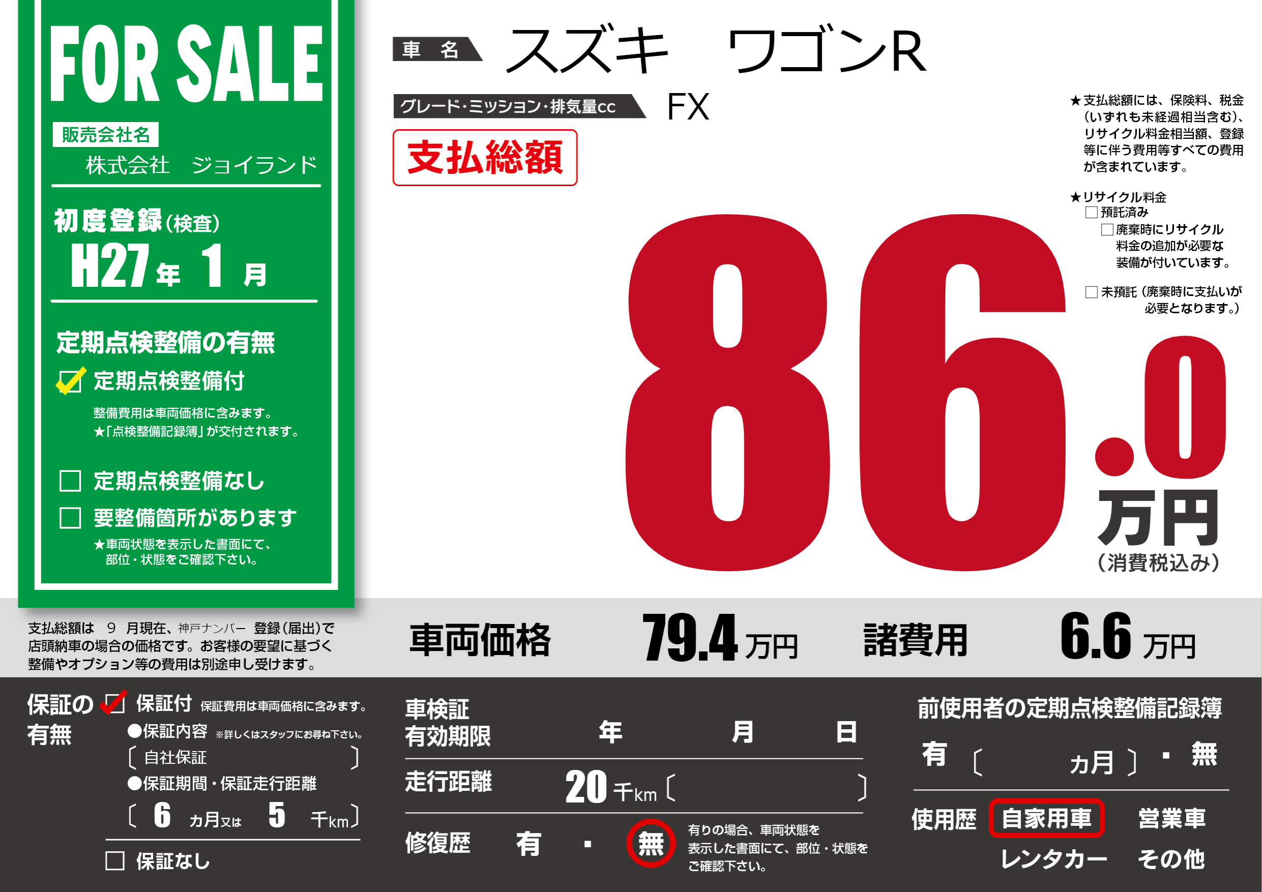 保証付き 保証内容(自社保証) 6ヶ月または5千km |