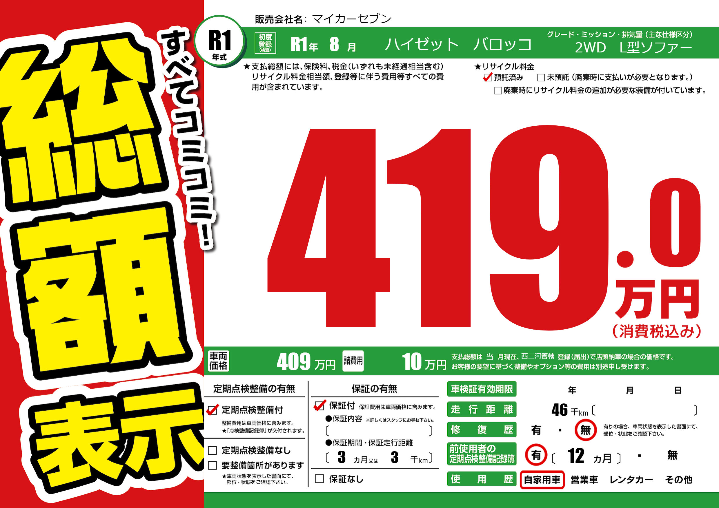 | 車名 | ハイゼット バロッコ | グレード ミッション 排気量 |
