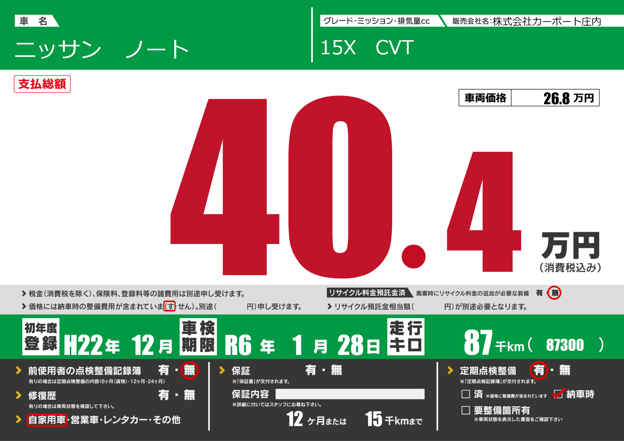 定期点検整備 定期点検整備あり 納車時あり