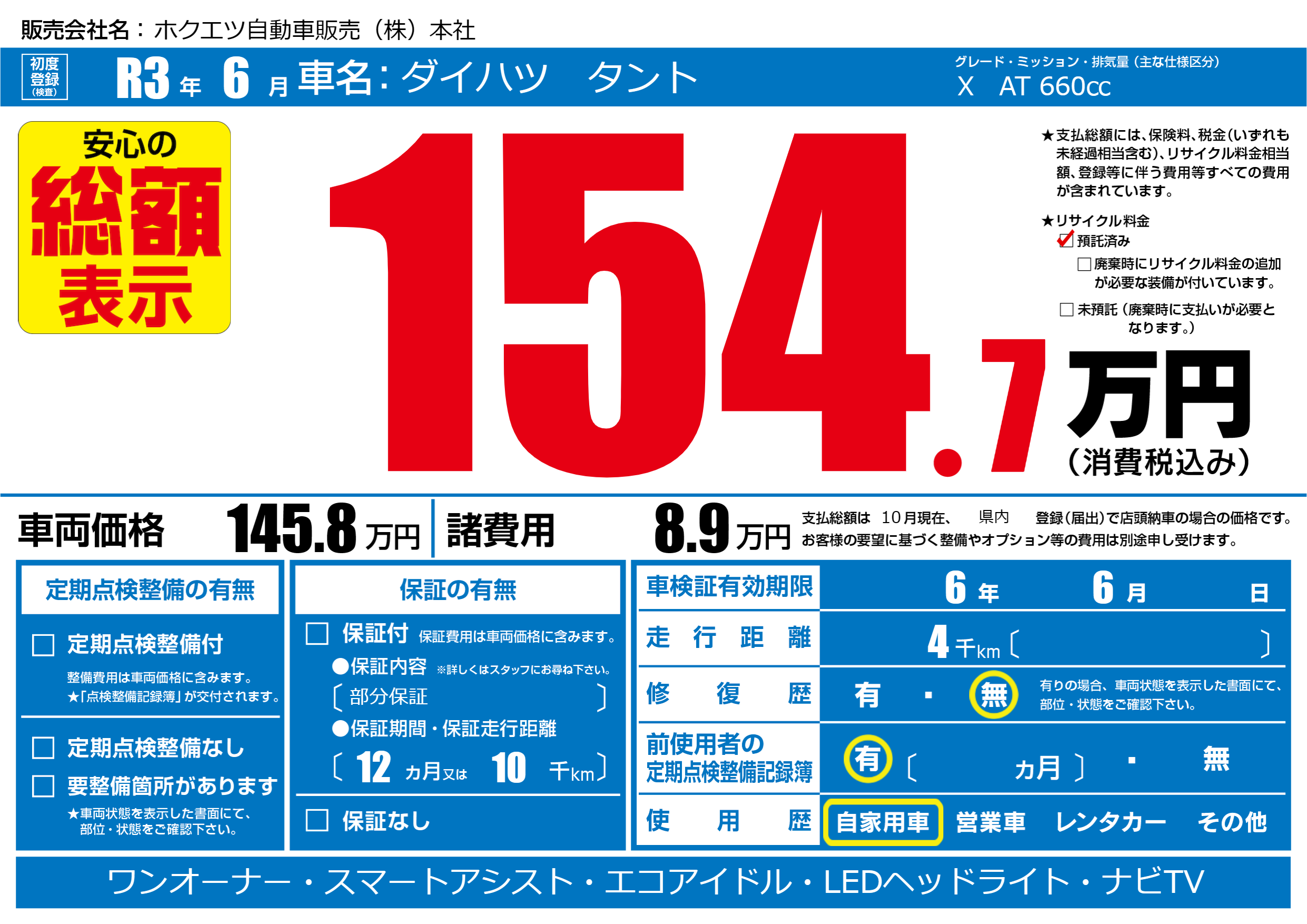 | 初年度登録 | R3年6月 | ||