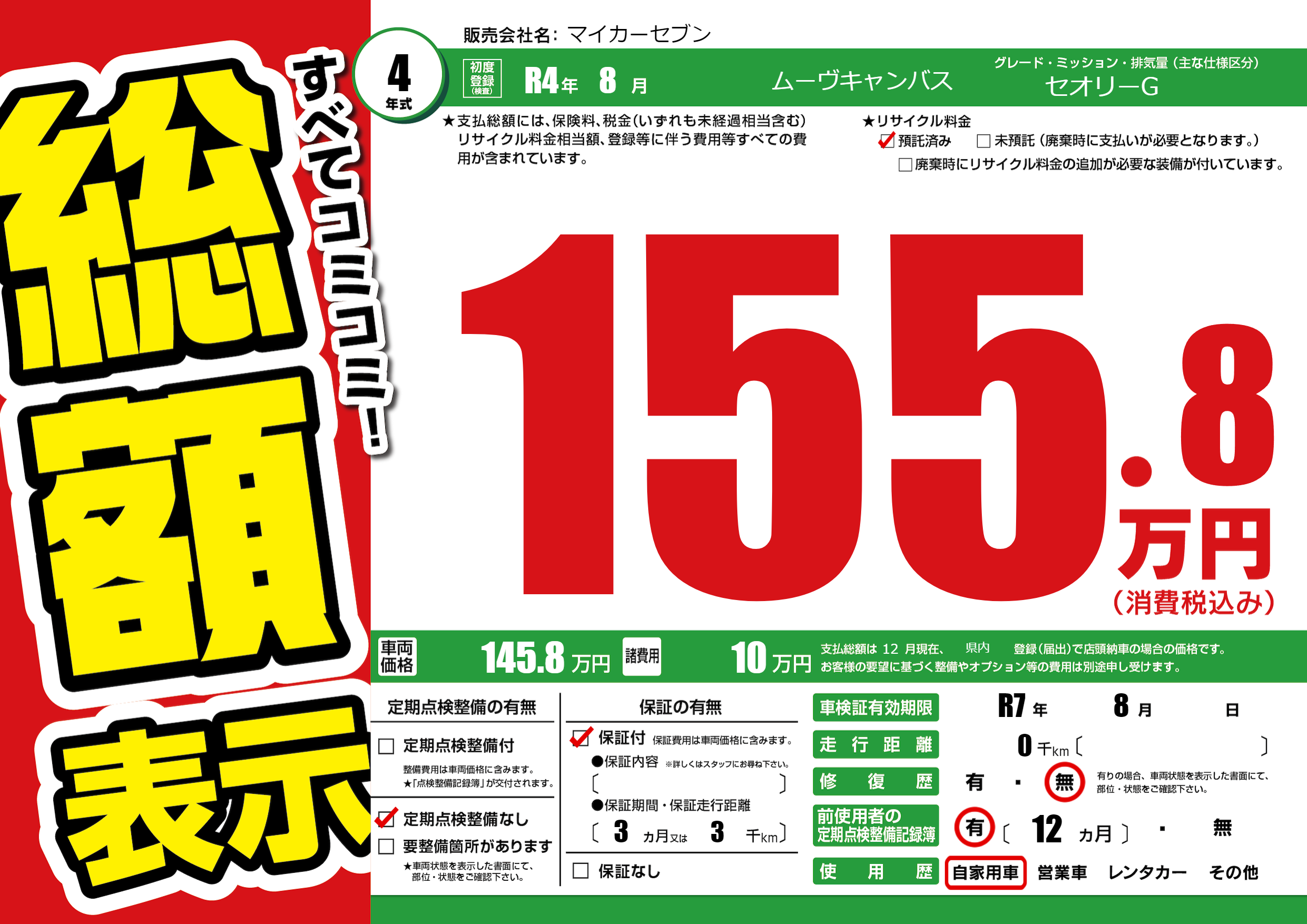 なし | 車検制限 | R7年8月---月 |