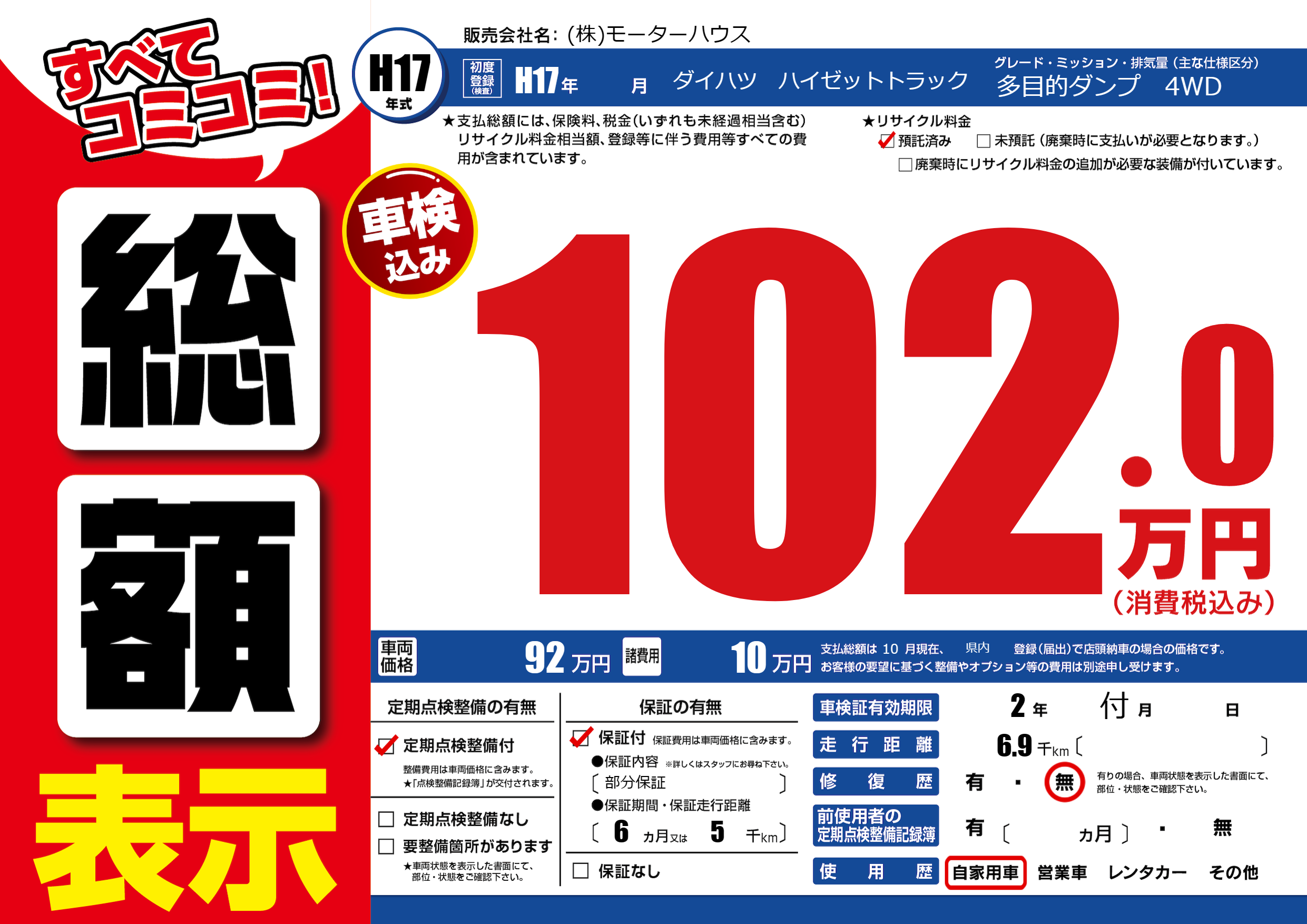 保証付き 保証内容(部分保証) 6ヶ月または(5)千kmまで |